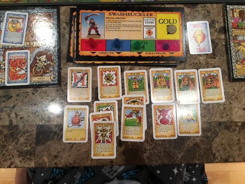 The family and I got in another game of Talisman tonight (skipped watching the Super Bowl). My daughter crushed it as the Swashbuckler and rampaged through the game beating the Dragon King easily.