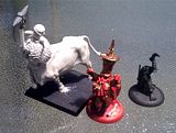 at the moment, i have hacksawed off the back quarter of a scibor moscal and pinned it to the bull body, used putty to blend the body in, gap filled and created a great weapon from styrene rod and a black orc great axe. I was going to put a shield on the gut ala ogres, but I think instead that I will just recreate the classical bull centaur armour from the old model/new art to cover some of his front and flanks, doing the old armour strip down the back and around the tail.
