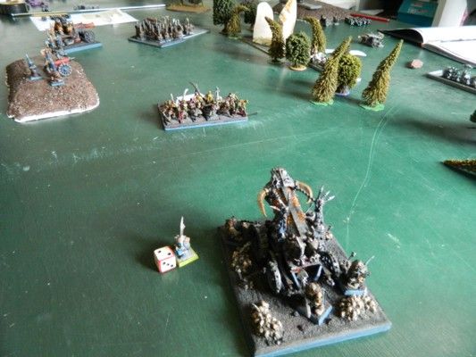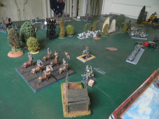 I won the roll off and elected to go first. Mainly to set up my cavalry units for hunting before they got shot and hopefully do some damage with my war machines before he started his shooting.