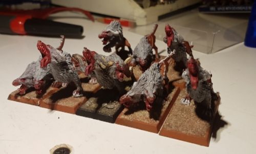 A small start on doing some Chaos Warhounds including redoing my ‘Cerberus’ to match my new preferences with their fur.
