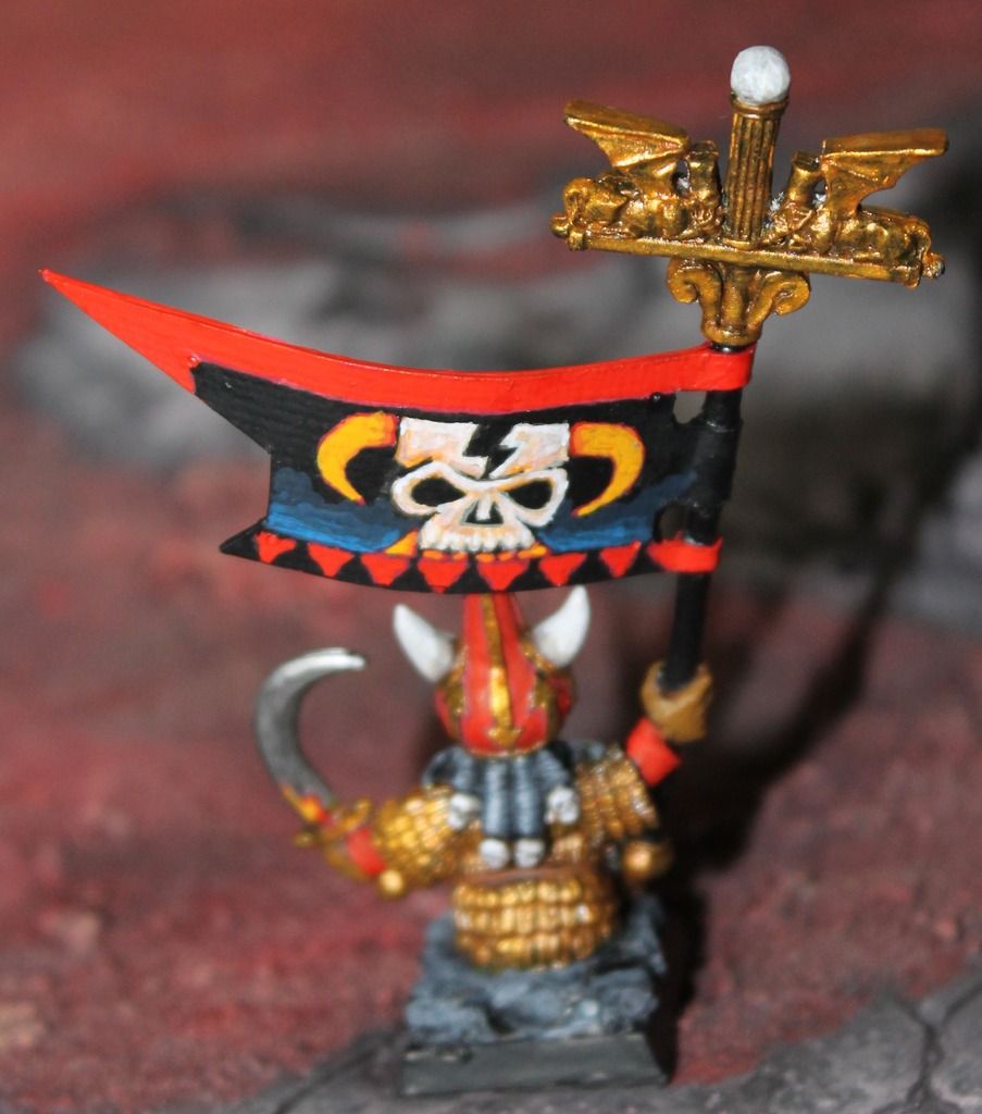 I saw a great banner pole in other blogs and realised, that it was the banner pole of a fith edition bull centaur. When somebody offered just the torso of it, I took the chance to make an infantry BSB out it: