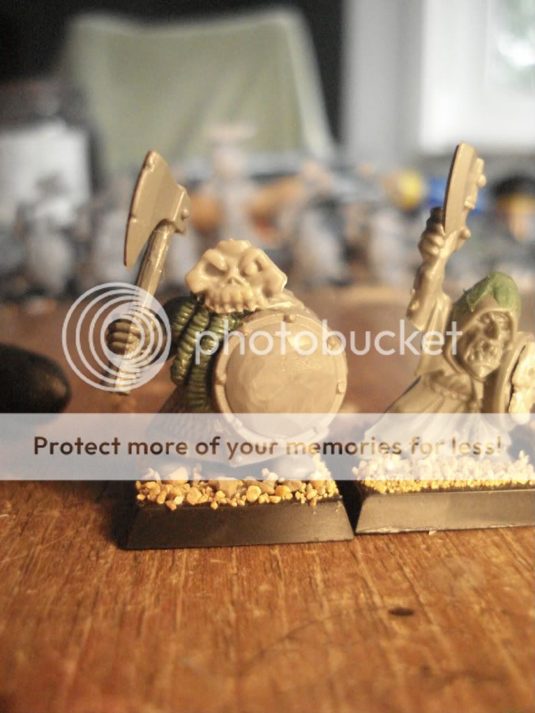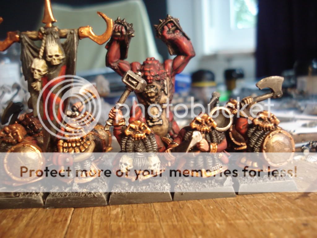 And here are some half- painted warriors, a little different from the rest of my models (they have bare arms and their armour trim is red):