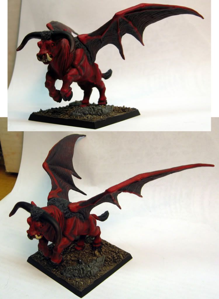 Also painted up a Taurus. Havent gotten to the rider yet. My main theme is going to be warmachines and daemon-steam, so not sure where he would really fit.