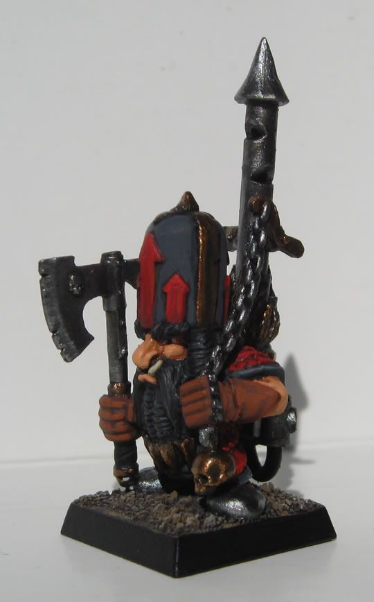 I’ll also say that your version of the bighats is more acceptable to me than GW’s version. Looking at him, I don’t mind him that much at all–the hat doesn’t look that bad and the dwarf underneath it looks pretty good too. He’s got a kind of a bone to pick with someone, as he has that nasty glint in his eye.