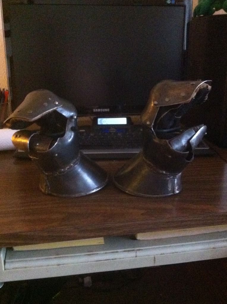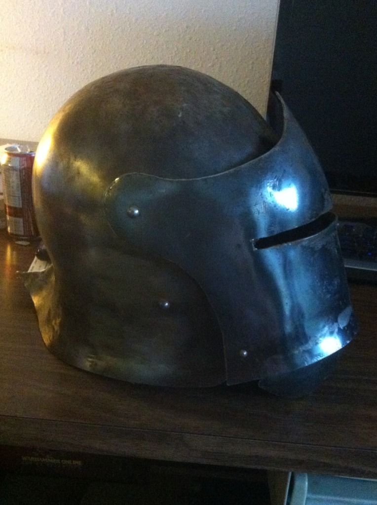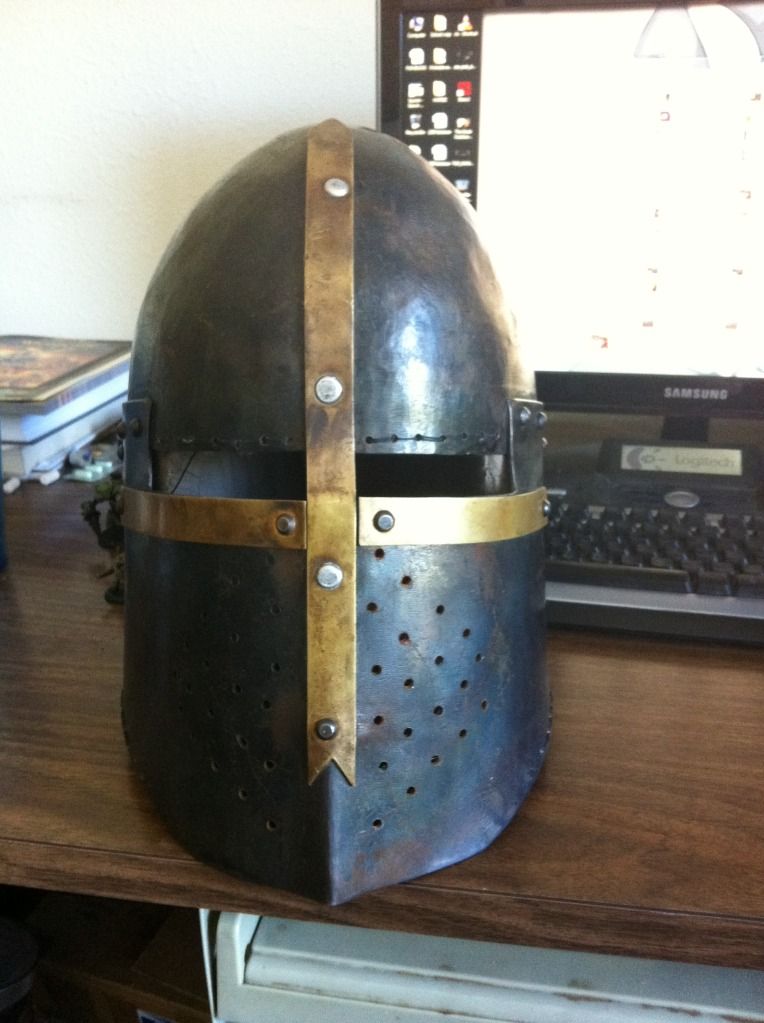 Also; the stuff you find at renfairs is generally eighteen gauge or higher steel, and cold-banged into shape (as opposed to using the heat from a forge or acetaline torch to “raise” a helm, which creates a lot of strength). The stuff I build is twelve to fourteen gauge steel, and raised, so you could take a lead pipe to the melon and (assuming you’ve properly padded) not get a concussion.