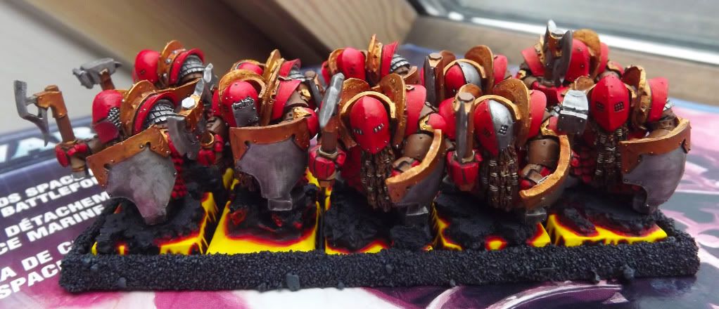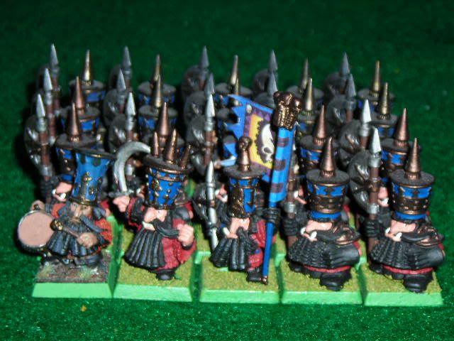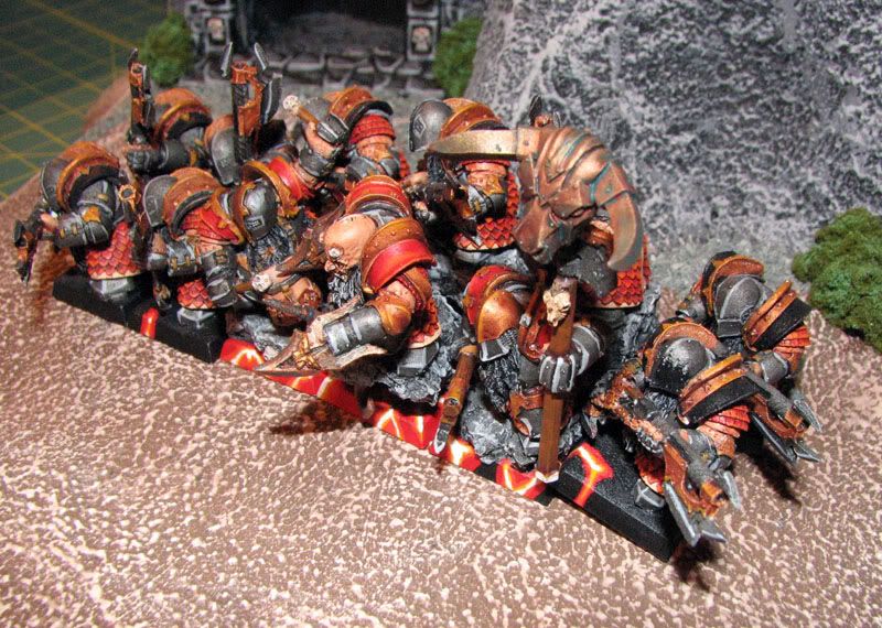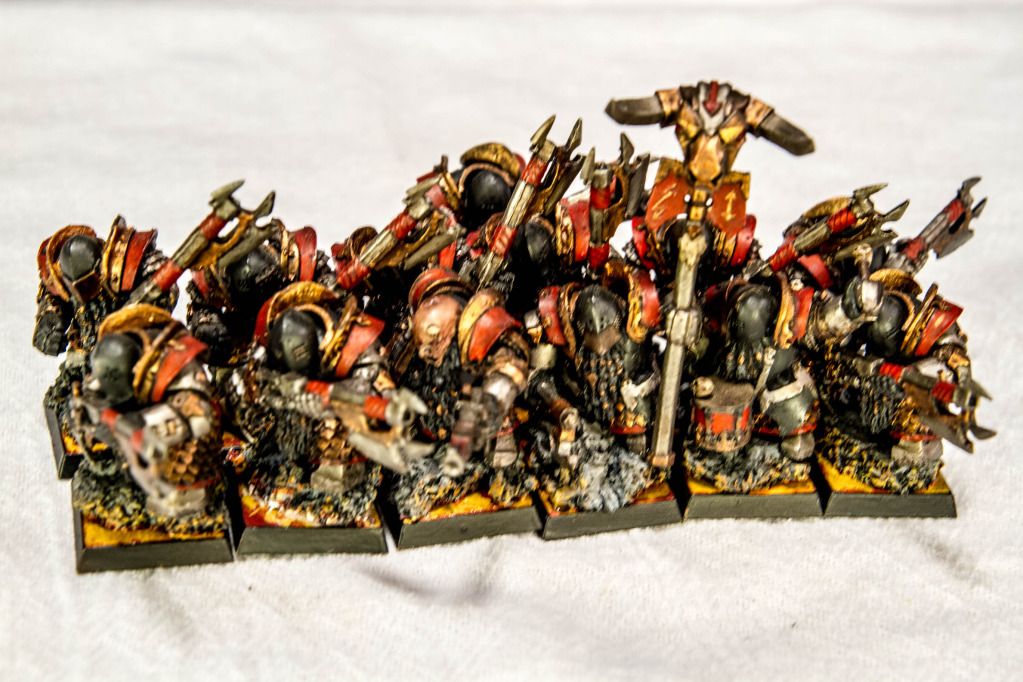 Seems I neglected to post these guys. They were my first unit of painted Chaos Dwarf Warriors.