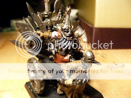 And the other thing (two things) are my Iron Throne, all painted up! It was a fairly quick job, done with plenty of reference material on TV in the background I love the disgruntled look the slave has beneath his mask - I like to imagine he used to be someone important before he found himself under the tender lash of Ashur’s slavedrivers. A champion of someone or other, a minor princeling maybe. Either way, his fate is now to pull what must be an incredibly heavy cart (and mechanically unstable too, let’s face it), with it’s rider, today being modeled by my daemonsmith. It’s the Games Day guy, which is a truly beautiful model if you’ve never seen it in the flesh, though he’s unlikely to ever ride the chariot properly. He’s going to be my cannon-sitter, I reckon, for the lovely buffs I get off him. As I say, I’ve yet to find the perfect Ashur yet, but I’m sure if I look hard enough, something will jump out at me.