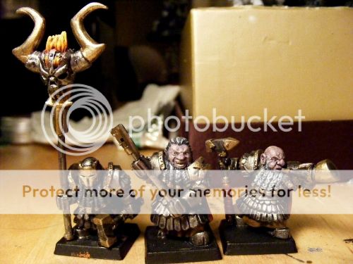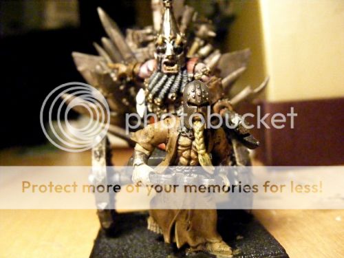 This army is themed around Lord Ashur, my Sorceror-Prophet, awaiting a suitably amazing model to represent him. He’s hell-bent on achieving power, not only in a temporal sense, but also infernal, and obsessed with flame. He believes he can, through experimentation, ritual, and the sacrifice of thousands of slaves to the hell-fires, ascend unto chaos to join Hashut, as a living avatar of his will. When this happens, all shall bow - not only the dwarves, but also the races of men, of elves, and all other things. Around him, he has gathered an army of oath-sworn warriors, each promised a fraction of the power he will eventually inherit. Some are dwarves, bitter and twisted, while clans of feral Bull-Centaurs march under his banner alongside daemons of fire and iron - outcasts and slaves all, to the will of Ashur. They roam the world, gathering slaves to transport back to their leige-lord, to feed the furnace of power.