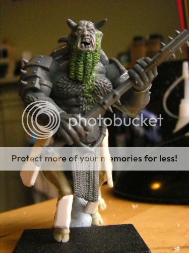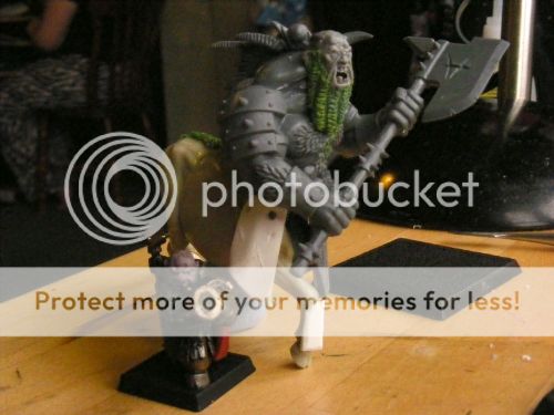 And finally, my first Bull-Centaur. Credit for this one should go entirely to Yawarakaimatsuka, since it’s mainly his idea. I’m using the same bull models (huzzah for chinese resellers!), though minotaurs, rather than ogres, for the torso. I wanted them to look like true mutants - hulking monsters that even the temples of Hashut in Zharr Naggrund wouldn’t have - the huge minotaur bodies work a treat for this, while retaining the more humanoid look of an ogre head (it’s also slightly too small, scale-wise, which always reminds me of those super-bulked out bodybuilders). The plan is to fit them all with beards, greaves, and tassets (the straps for which I’ve greenstuffed since taking those photos), and let them intimidate the living hell out of the guy on the other side of the table. These guys are truly huge - I do worry about the size of them compared to the FW ones, though I’m off to warhammer world this weekend, so I’ll take the opportunity to compare scale.