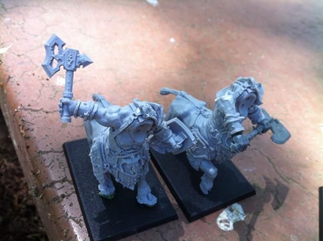 Here are some bull centaur conversions… …With only 3 sculpts (released :-)) I needed to make them all different. Plus I wanted a great weapon alt for the hero (and maybe unit)�?� so to be flexible I added a whol command using minotaur parts.