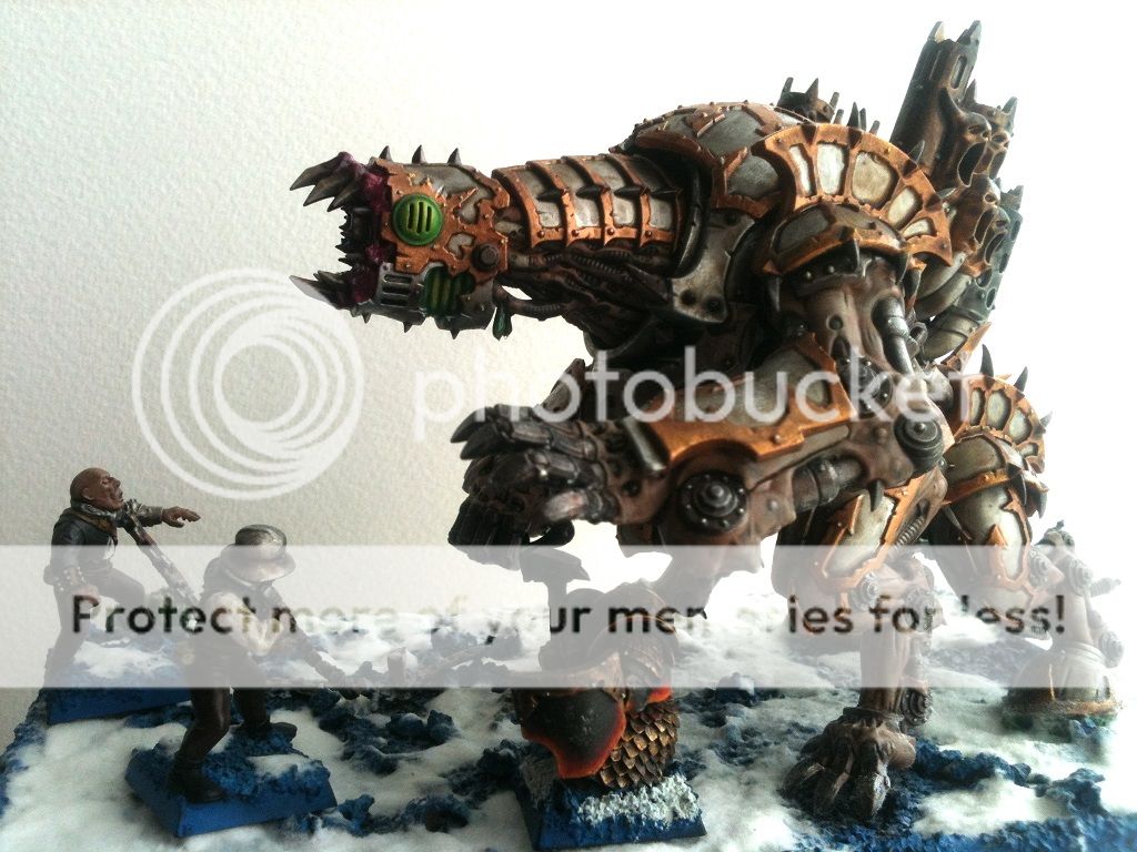 looking good, though I personally am m not a huge nurgle fan. Nice little christmas gremlin though. The crewman and his armour look very good and I really like the heat effect on the face of the hammer. Not all over-the-top blazing fire that suits K’Daii and such, its just hinting at the heat hidden with-in