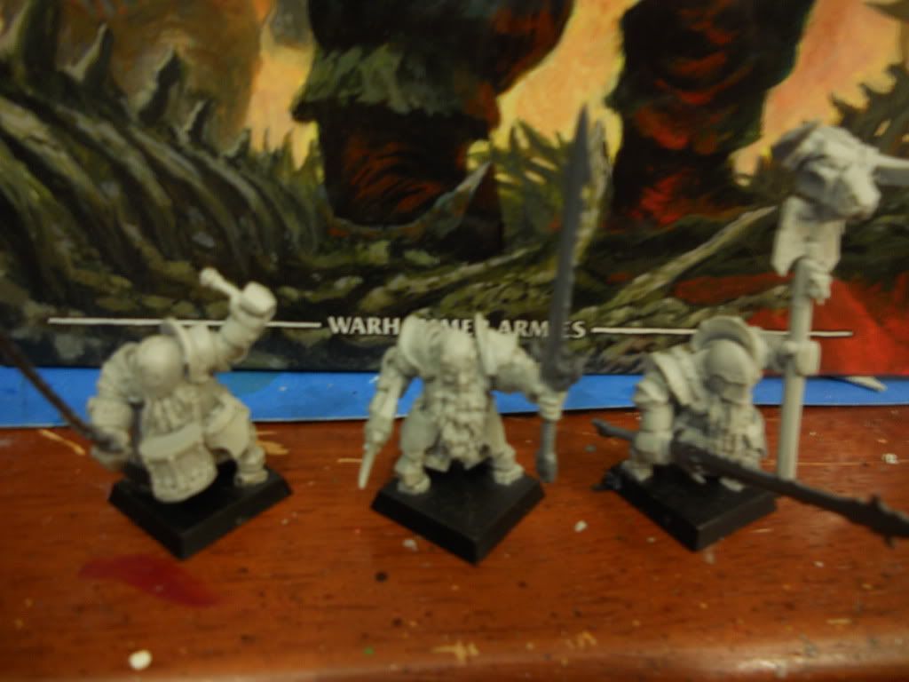 I have been looking at the fireglaive folks too for this as the hand-weapon guys all have one of the hands attached to the back of the shields. The positioning of the standard bearer makes him the easiest conversion I have been trying out the roman halberds from scribor minatures I clip off the bottom spike and its makees a really large great axe. It still takes a lot of green stuff and am not really happy with it on the rank and file I have yet to find an axe that works well for me , the swords look cool but really want my guys to have axes. Was considering using the lances from the chaos knights one looks like an axe