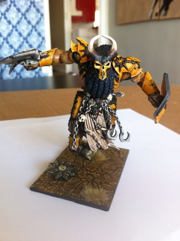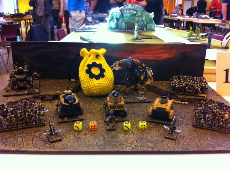 Back from the weeekends 5 game-tournament, with 30 players. It was great to finally getting to play my chaos dwarfs with a full 2500-list. The result weren’t so great though, gaming wise. Three losses, one draw and one win. To add insult to injury one of the losses were against Sherlockos Chaos Dwarfs (Red Skin, White Ice, Black metal)… But the great thing is that my Destroyer slaughtered his Destroyer, and also managed more kills over the whole tournament than his. So, whatever the end result, I regard the weekend as a victory.