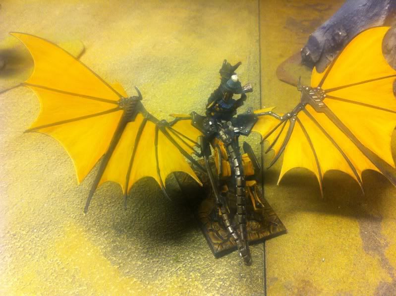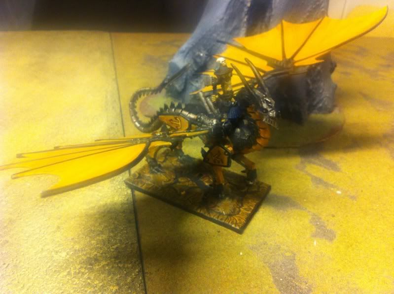 Crappy pictures, but maybe you get somewhat how it looks. It’s the clockwork dragon from Reaper Miniatures, their Bones-range. (Weird material that. )