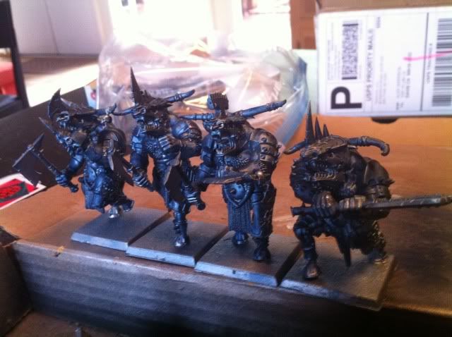 I had to clip the legs off the Blood Crushers, and add some green stuff cloth, but that was not too hard. Also fliped the hooves on the other side of some of the blood crusher legs.