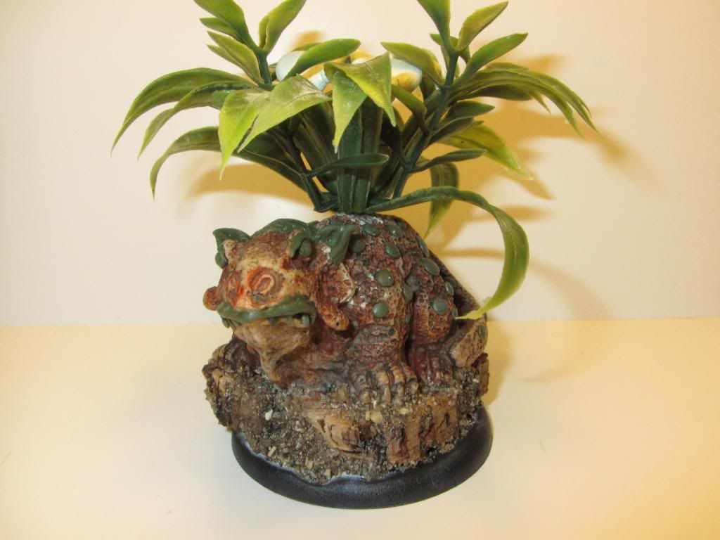 The toad is an ancient 80’s lead model. Can’t remember if it’s from Grenadier or Ral Partha… Onion on the back is again a simple greenstuff addition.