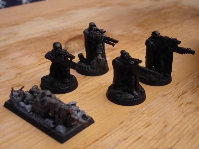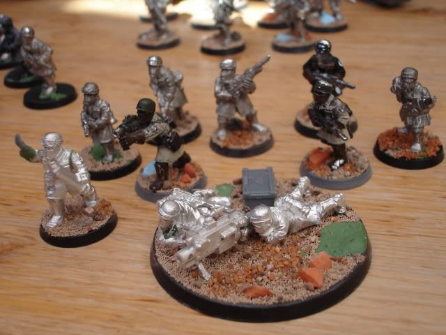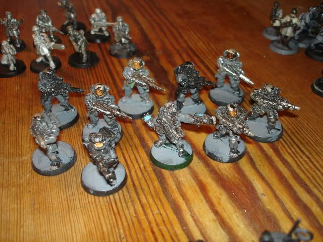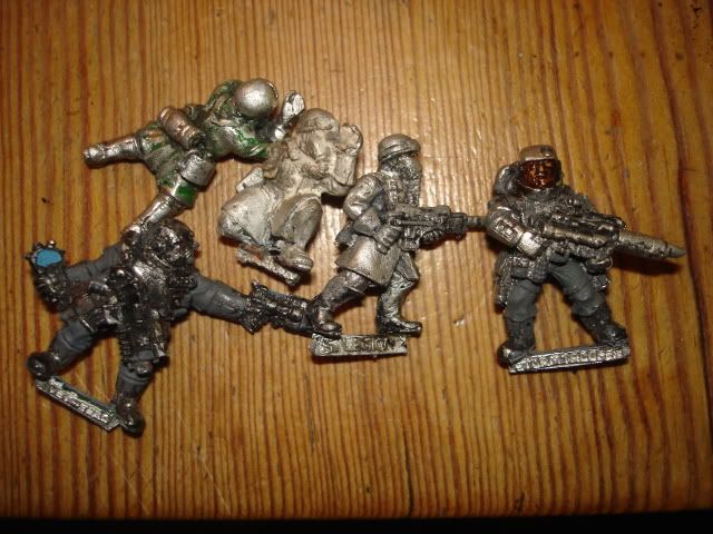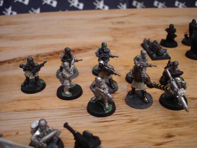 this is my army’s command squad. I chose to use the commissair model as a senior officier, since he follows the theme so well,