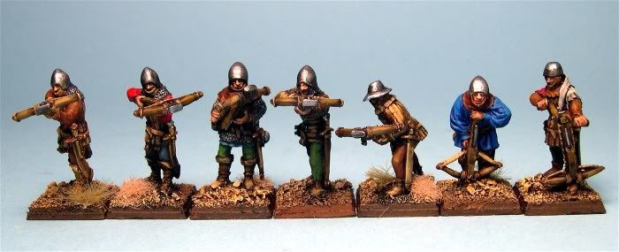 A small update, my crossbowmen. 7 of the 16 that are done. No real conversions, just paint work. They are a very characterful group. So fire at will boys.