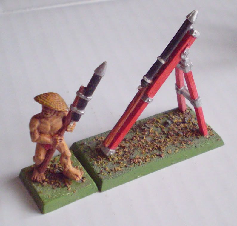 I have the butt-naked Ashigaru and the rocket itself lying around. Got them off a mate years ago with a bunch of the old Samurai, they’re badly-painted but strippable. I converted the rest into undead Samurai (the armoured guy holding the rocket is now my Skeleton standard bearer :)) but may still have a few untouched. Want me to check?