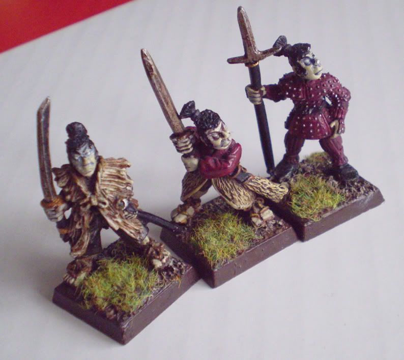 I have 4 or 5 Samurai in light gear with swords, and one fat Samurai with a hammer (not 100% sure if he is GW). Also have 3 Ninja. They have old paint jobs but are easily salvageable.