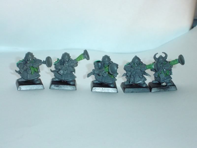 im really liking the masks. your greenstuff work looks really good. if i have anything negative to say it is that maybes the blunderbusses look too much like regular dwarves still, although im sure they wont once they are all painted and match.