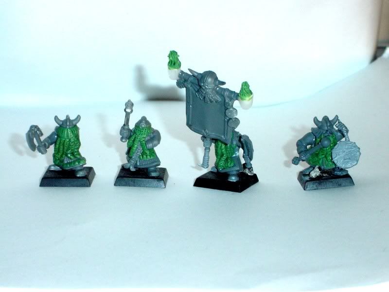 Torn - you know, I feel the same way - I have just undercoated them, and they look too much like normal dwarves. I think I will see about altering their helmets a bit, perhaps do some sloped back ridges to change their shape -I’ll see what I can come up with