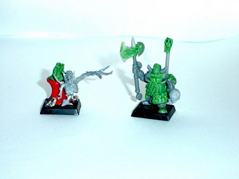 Ingrown - I will see about putting pictures up once painted, but I am stuck for a colour scheme. A thought struck me as I flicked through my copy of the Necron codex, to go with a mix of ceramic armour for the masks, and more traditional gems and metals for the armour - but I am worried it will look a bit wierd!
