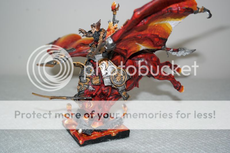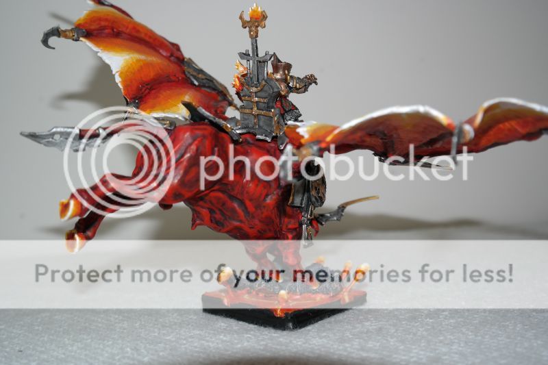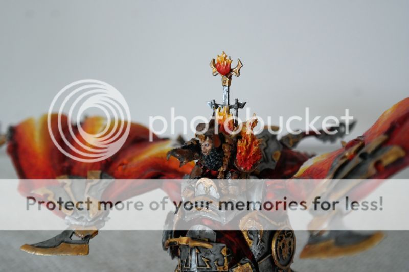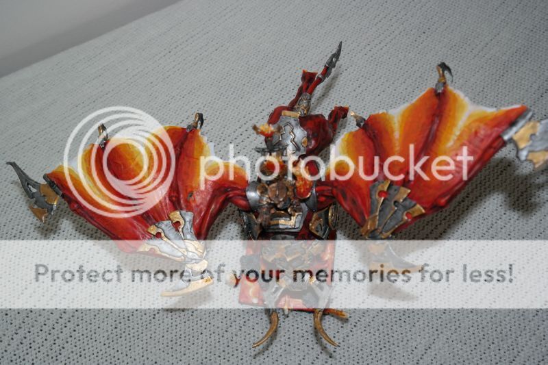 A camera can mess up any good paintjob. I’m not good at wet blending and paint my lava like you have done the wings. I find that a layer of Gryphonne Sepia (current seraphim sepia) over everything, and a layer of baal red wash (carroburg crimson) on the red part and some of the orange part. Really gives a more natural progression of colour - and it’s fast to do.