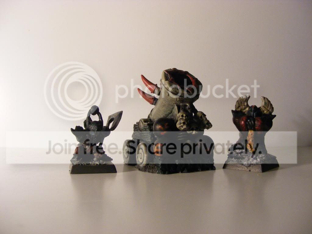 Decent painting on the cannon and Greenskins, and particularly good painting on the big K'daai! The colourschemes for the units are well chosen and the army as a whole will look good with such a unified, dark and fiery image.