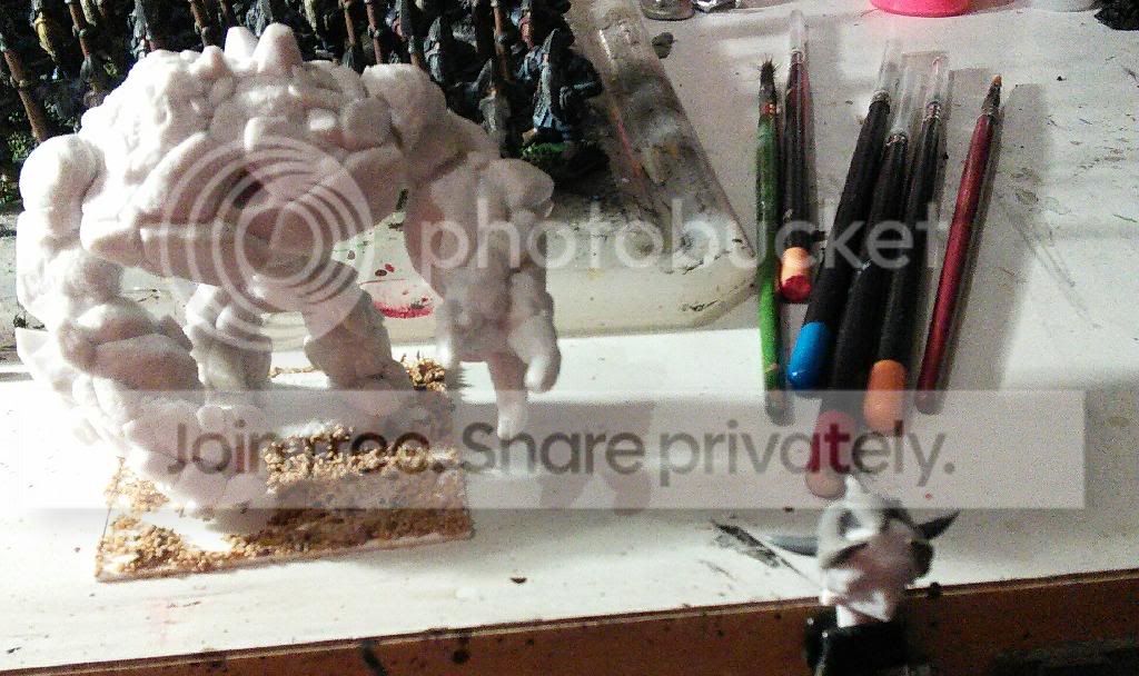 And a shot of the assembled golem next to a heroic 28mm artizan ww2 just to show scale