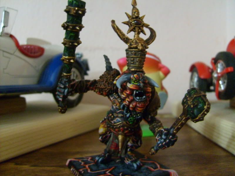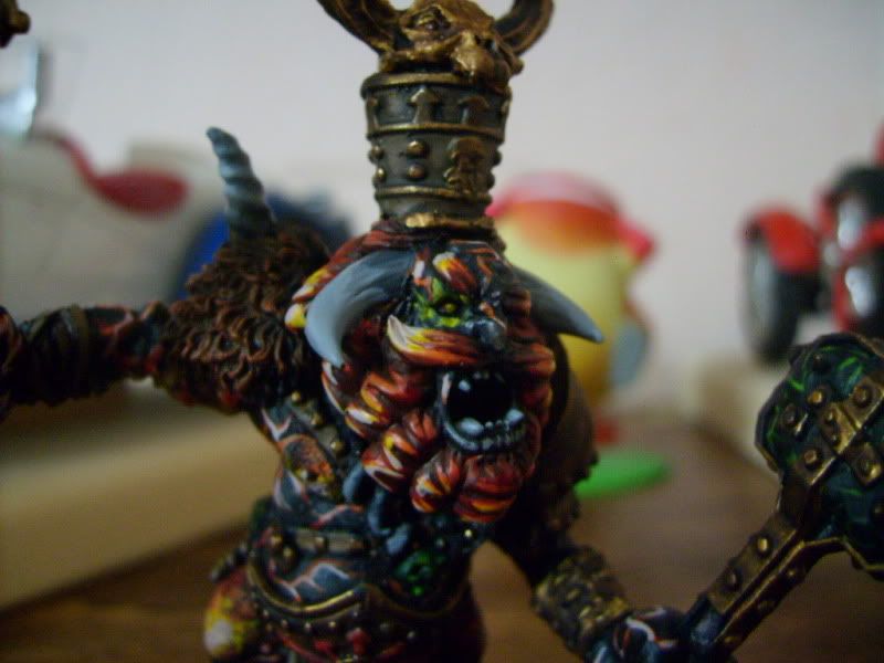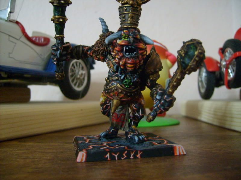 Wow, really cool and even more impressive painted! The only thing I dont like is that his hat seems to be more on his neck than on his head. But who is to argue how a 5 meters tall demonic dwarf should wear his hat.