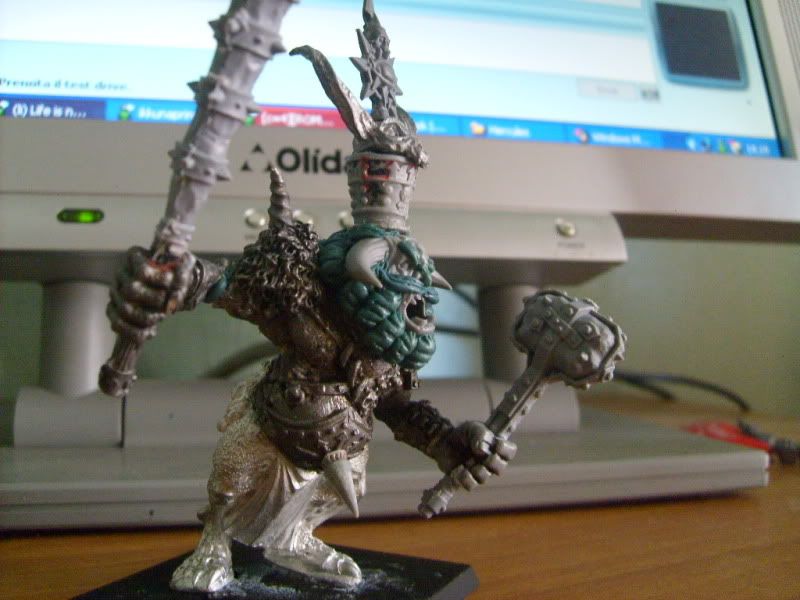 Originally I had planned a pair of feathered wings for him, but in the end I decided not to use them. I prefer to imagine this enormous dawi zharr floating on the battlefield like a demigod,descending to punish the enemies of the chaos dwarfs.:mad