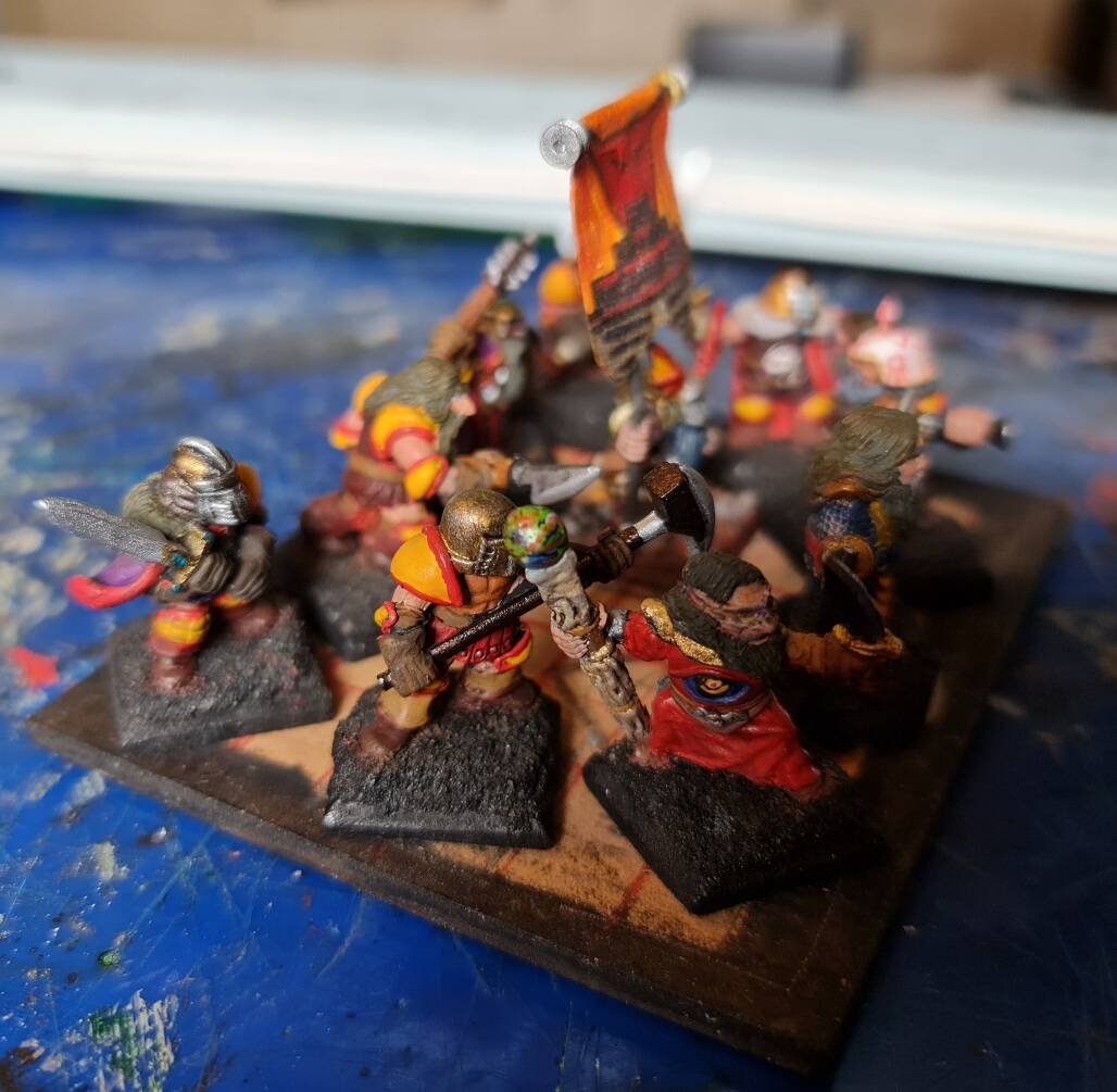 Finally got my KoW Grenadier Chaos Dwarf Regiment. I left a “plinth” for the missing mini, if I ever get a hold of it.
