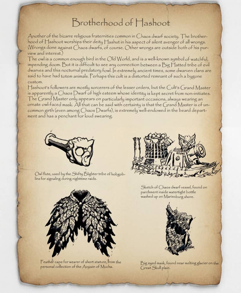 I realized I should probably collect these scribblings somewhere. I’ll start with the final entry in the series on obscure Chaos Dwarf Cults: The Brotherhood of Hashoot:
