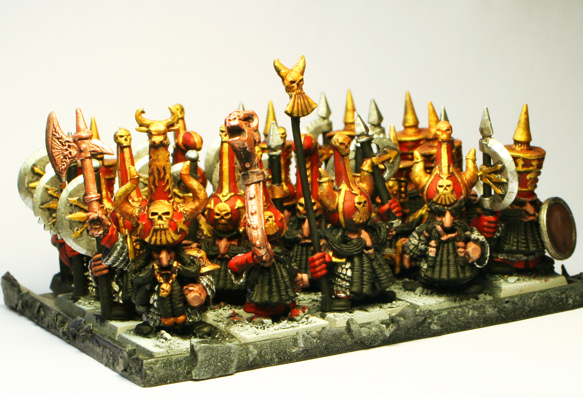 Legends among Chaos Dwarfs tell about a “ghost division” that come in the middle of the heat of battles and side wiht one of the contenders. Nobody knows the reasons behind the “ghost division”, sometimes they help Chaos Dwarfs, sometimes they battle them fiercely. That’s is why the appearence of these ghostly warriors is seen with apprehension by every Dawi-Zharr. Whose side they are going to take this time?