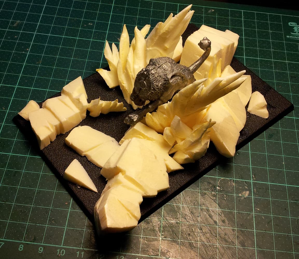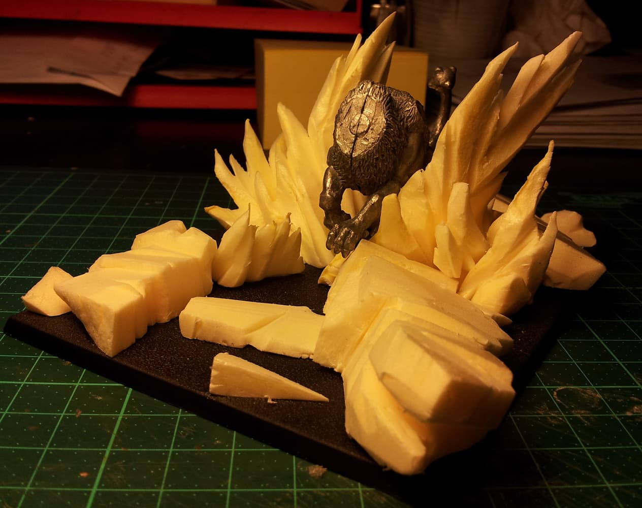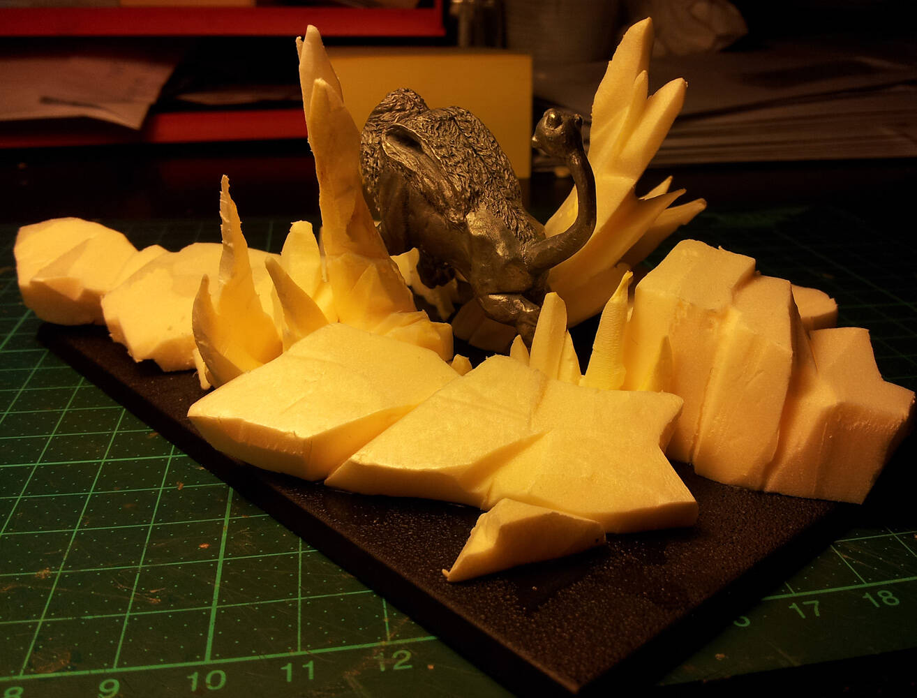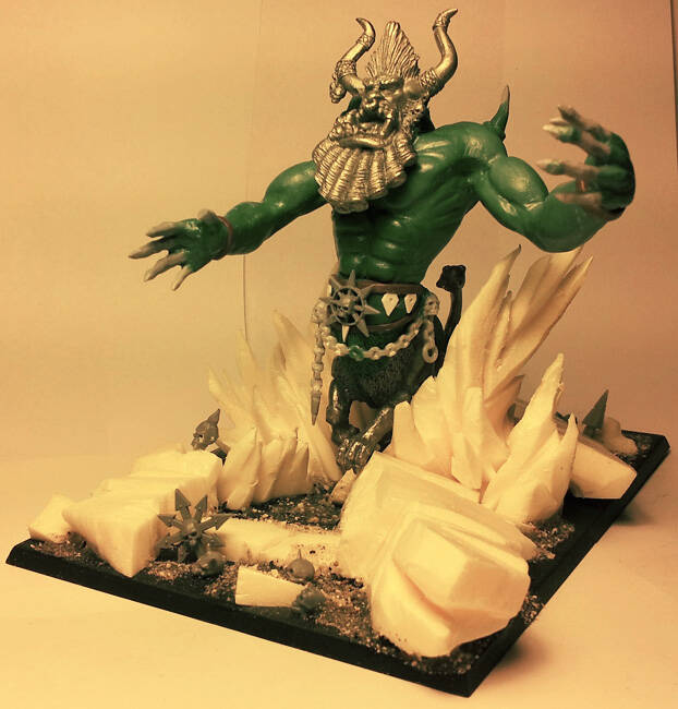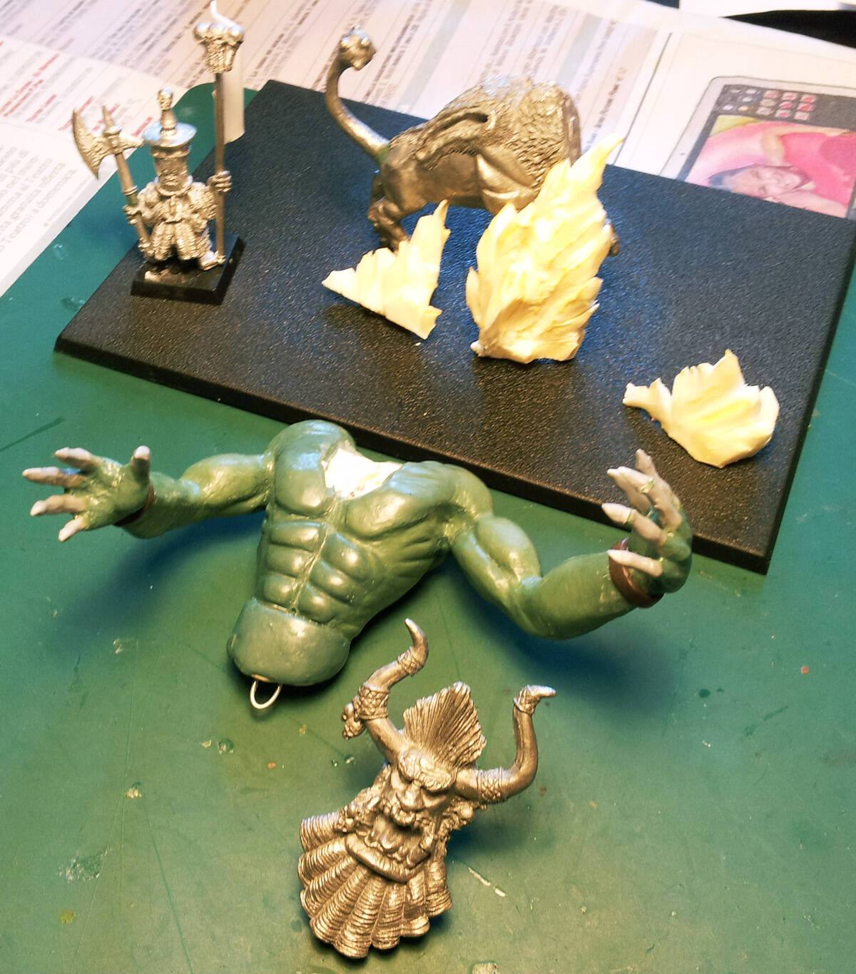 Basing the beast. I wanted him coming out from flames and experimented a little bit. After some time I think I could make the flames better…
