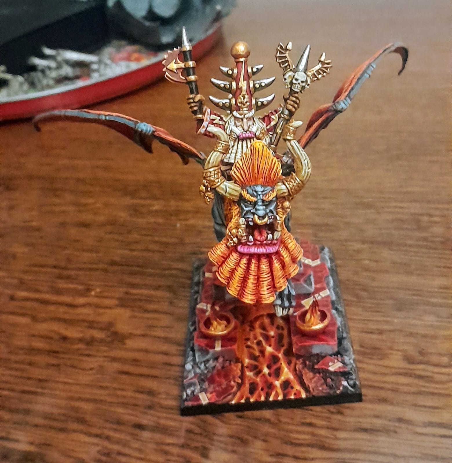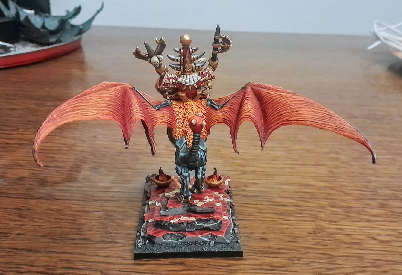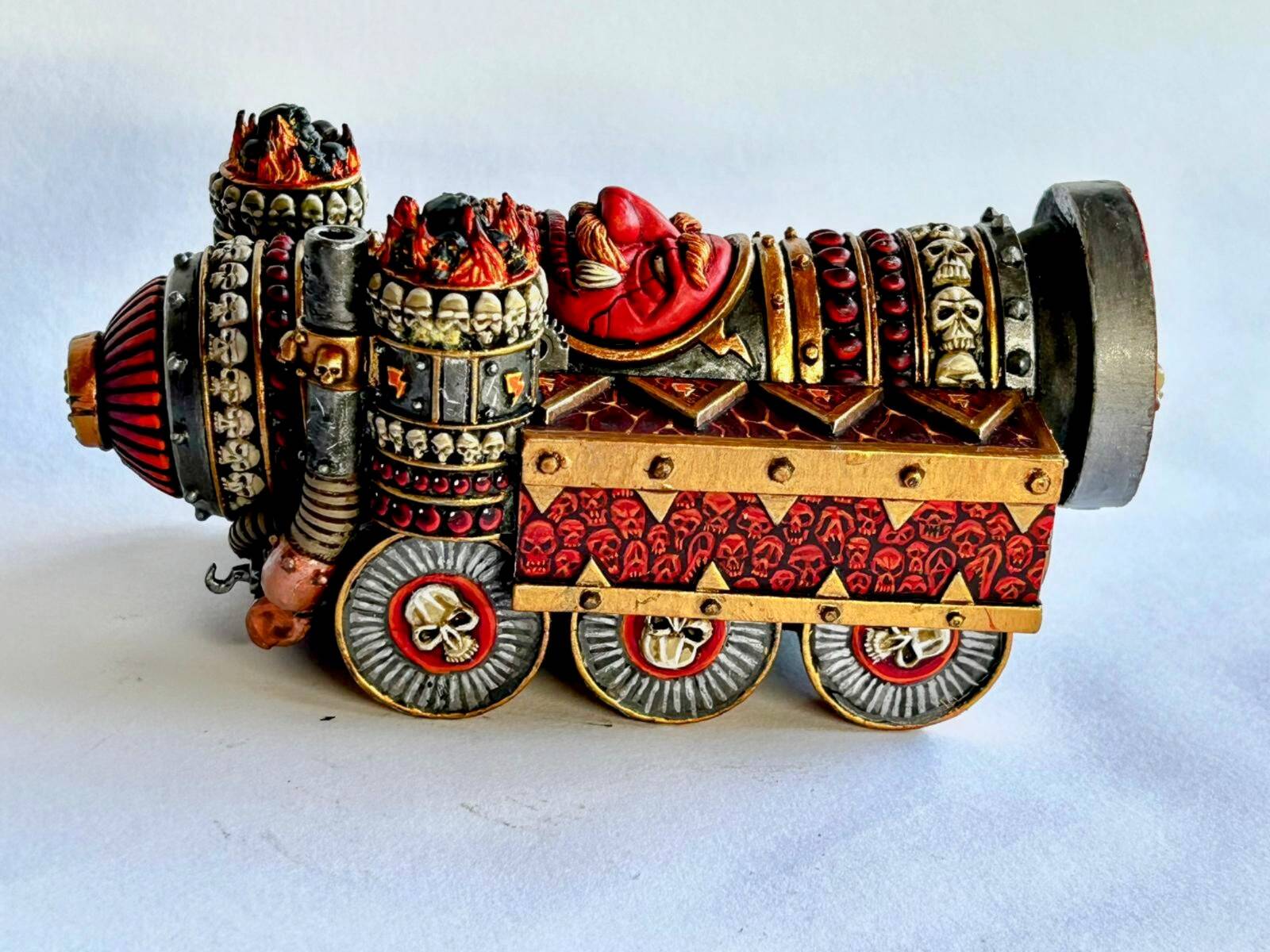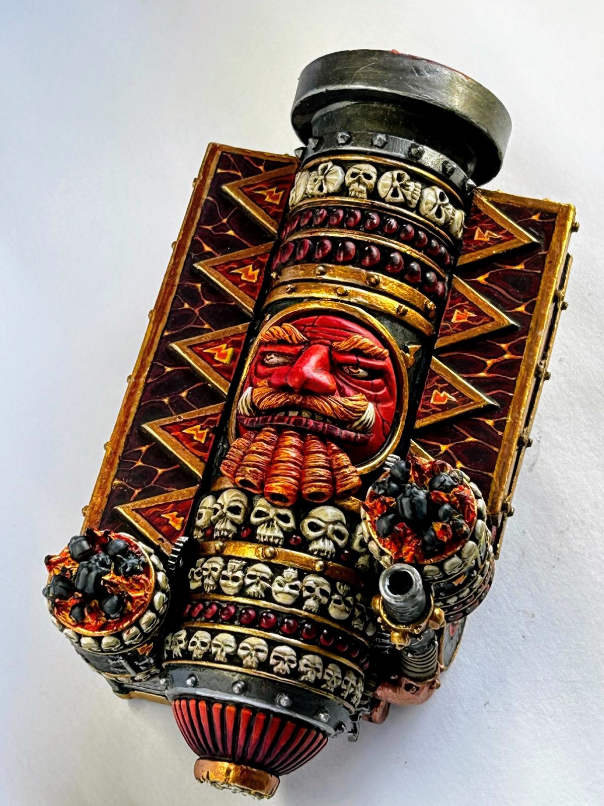 I was never fond of this model but after painting it, it grew on me! The base is made with sculpey, whether braziers and flames are sculped out of green stuff!