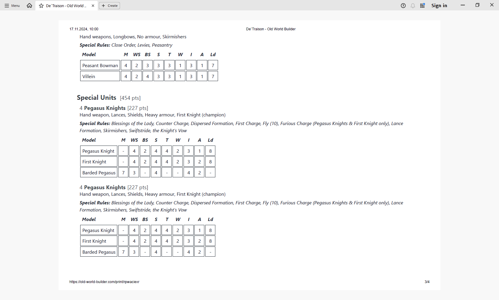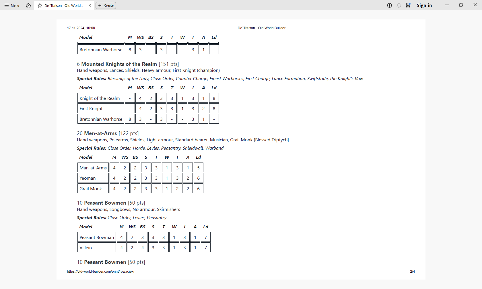 (Hand weapon, Full plate armour, Stubborn, Veteran, 8x Shields, 15x Great weapon, Boss, Standard bearer, Musician)