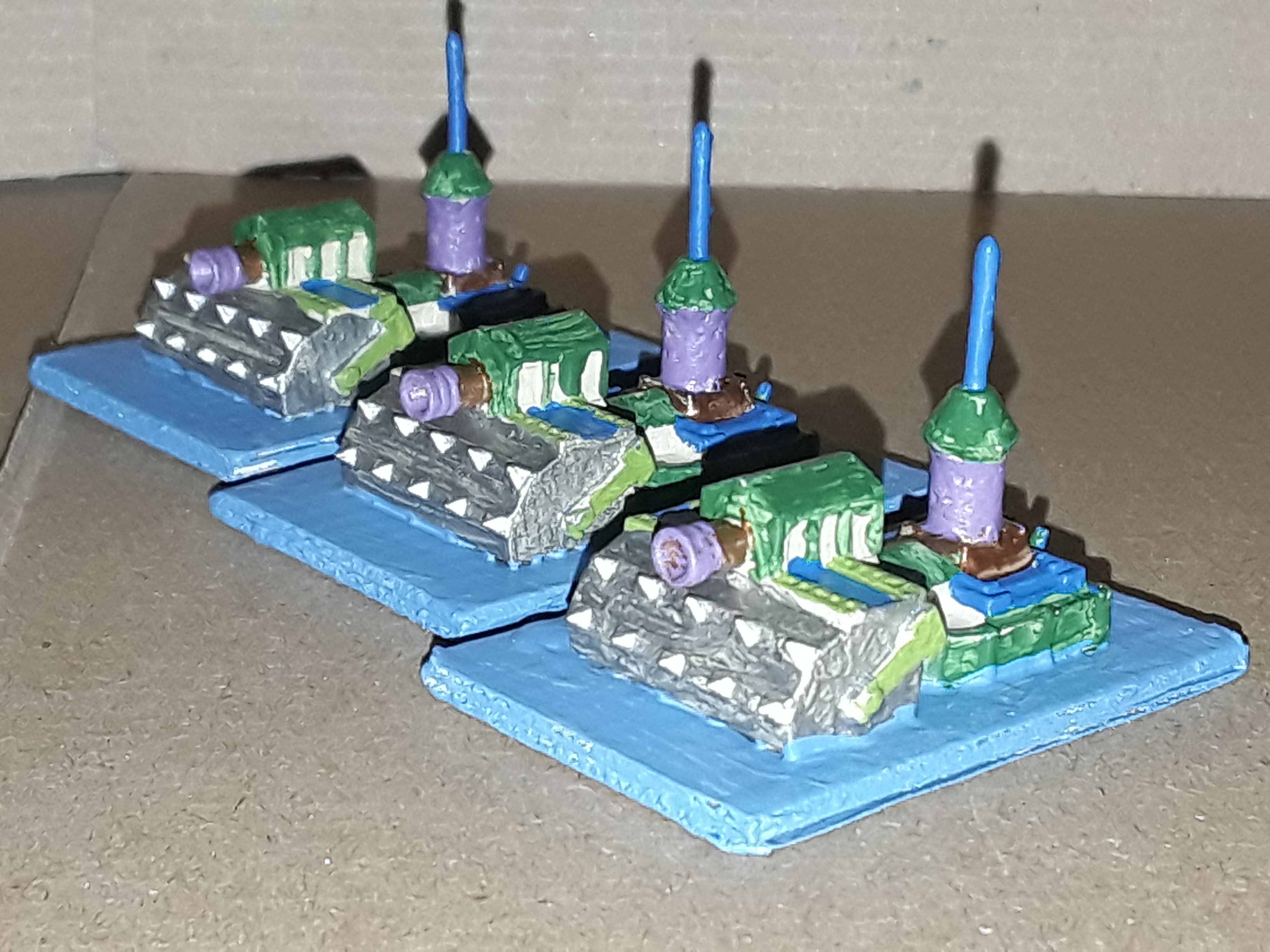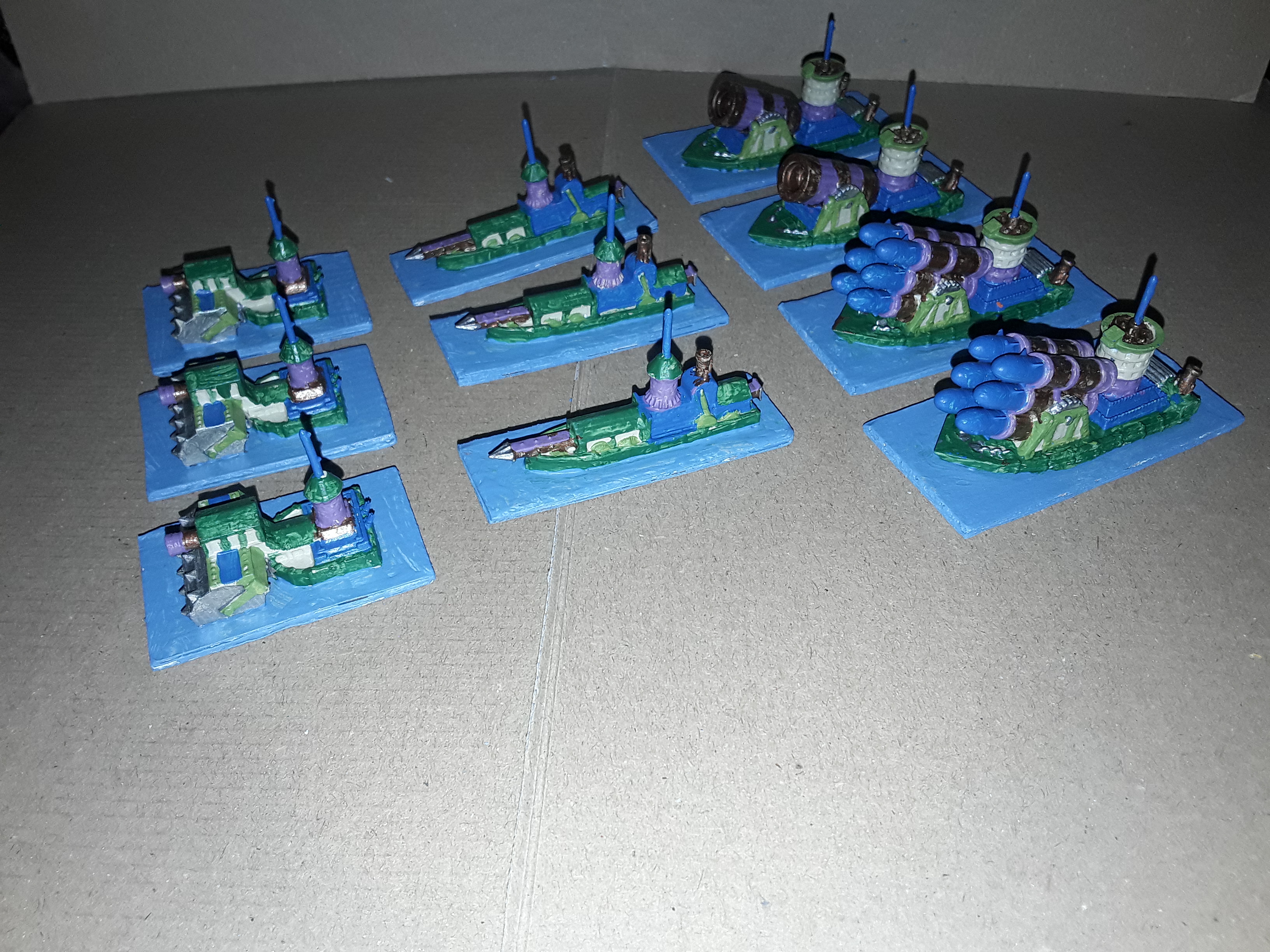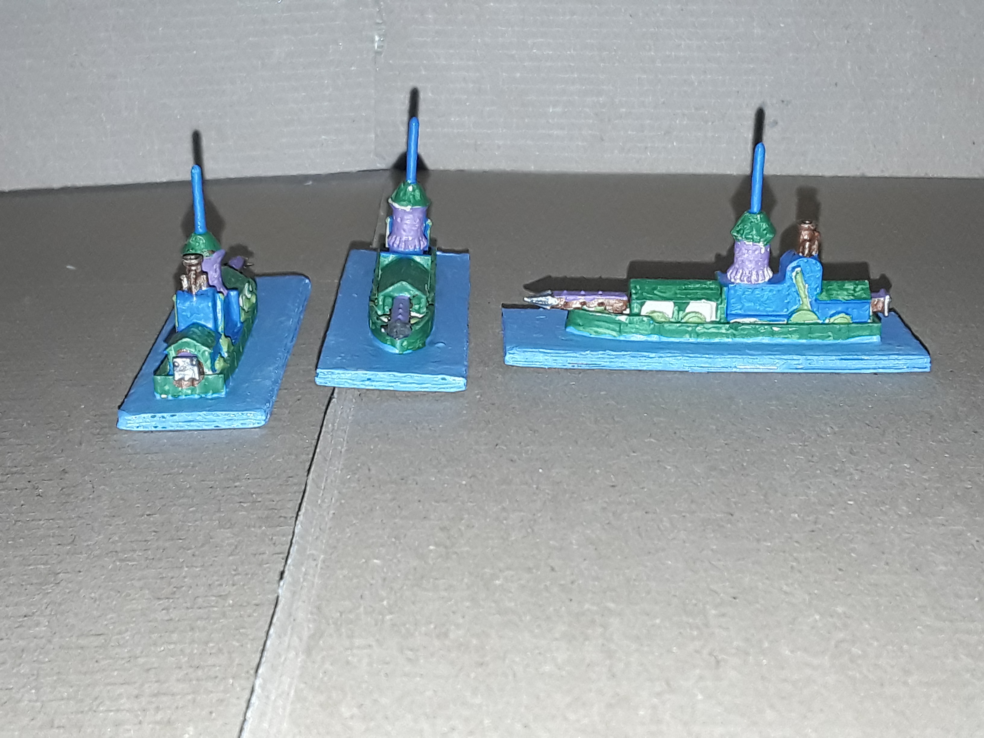 Here are the little ships I painted to represent part of the Chaos Dwarf fleet.These are the ones that were advertised on the forum. They are 3D priñnted and are very nice little models similar to the Man o War set from back in the day. I really like them and will probably be ordering some of the other races on offer.