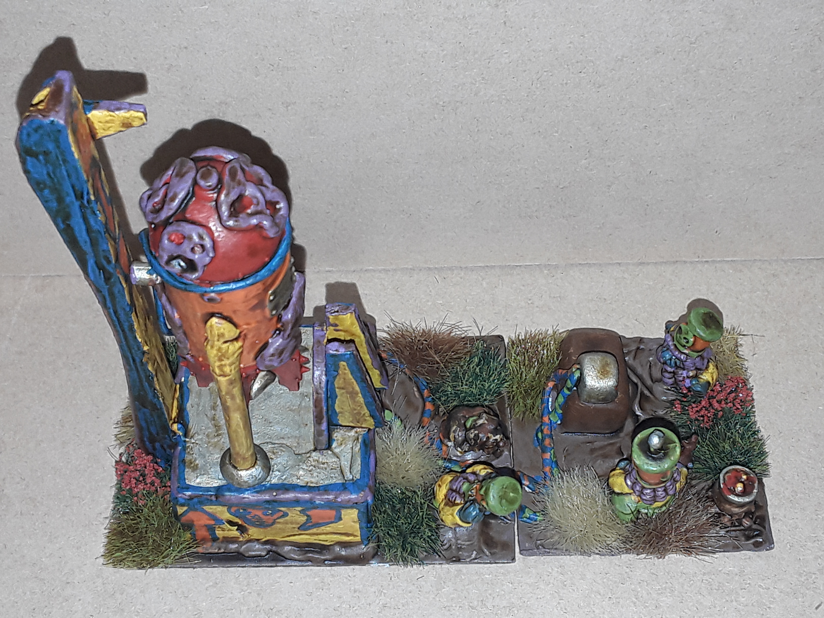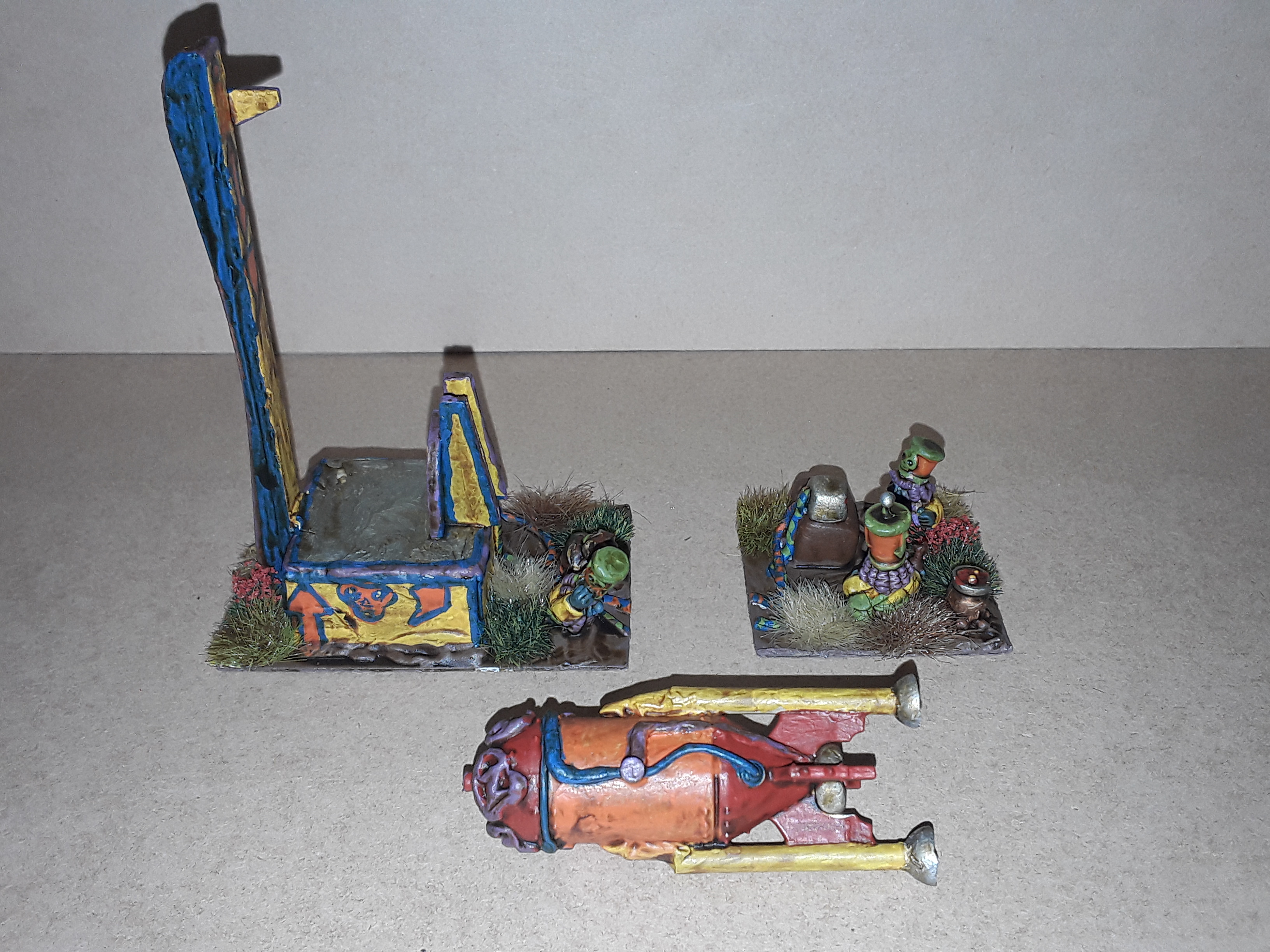 Not to mention that massive cannon thingy? It looks like something those Bull Centaurs could wield were it on a couple of wheels? You could have mobile artillery. Or mounted on a gunboat or steam tank. In fact a steam tank with giant horns and massive cannon and/or rockets covered in Turkish style rugs. Could be the Tjubling equivalent of a SOB exorcist tank for the vacuum grub cult! What a good idea I must build one when these all ecome available.
