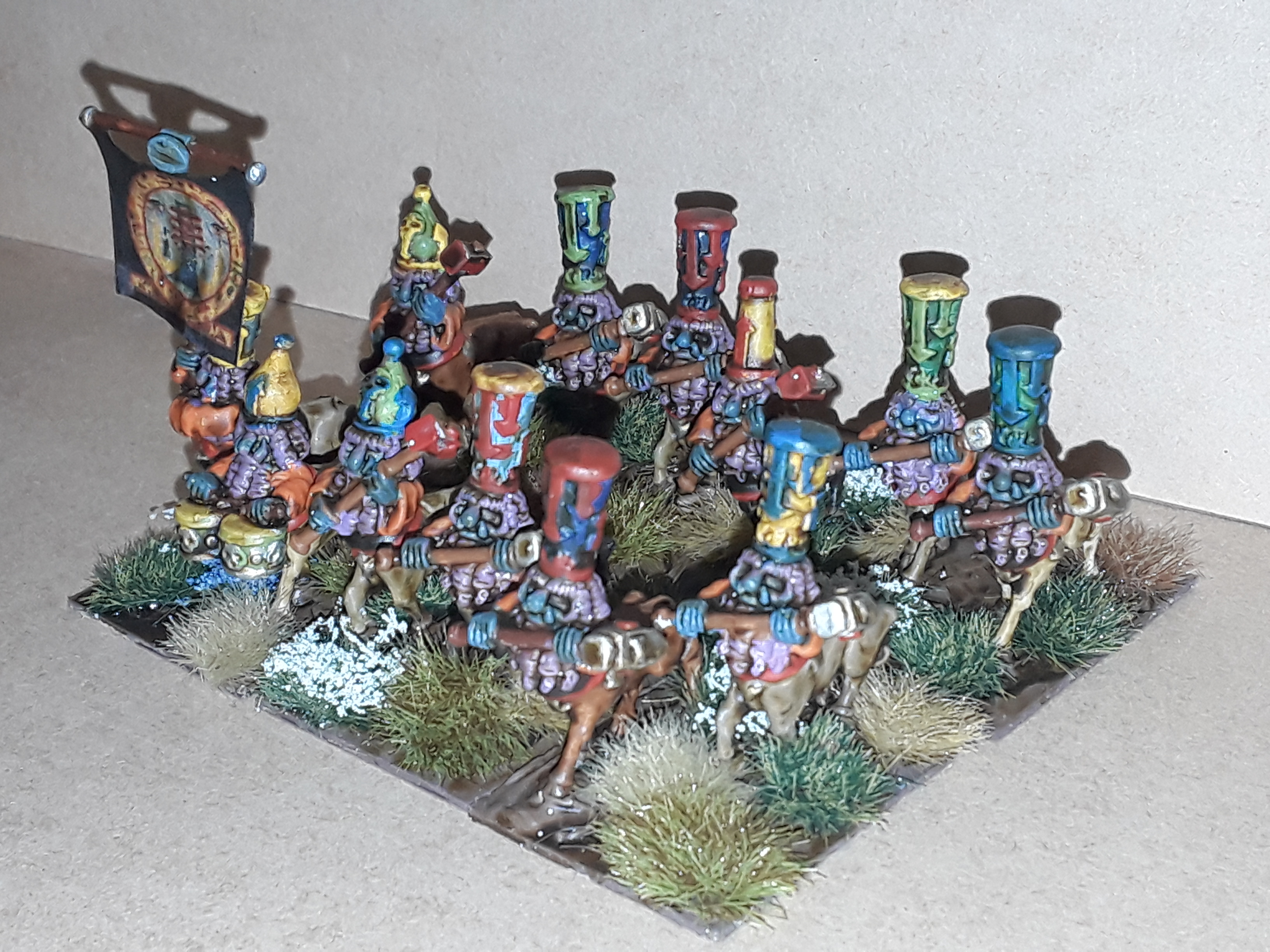I have completed a unit of 12 Bull Centaurs for the Tjublings army complete with the new command figures. I am reasonably sure I have another unit of Centaurs which I painted a while ago but I will have to look them out and take a picture of them altogether, a mass of Tjubling cavalry of sorts.