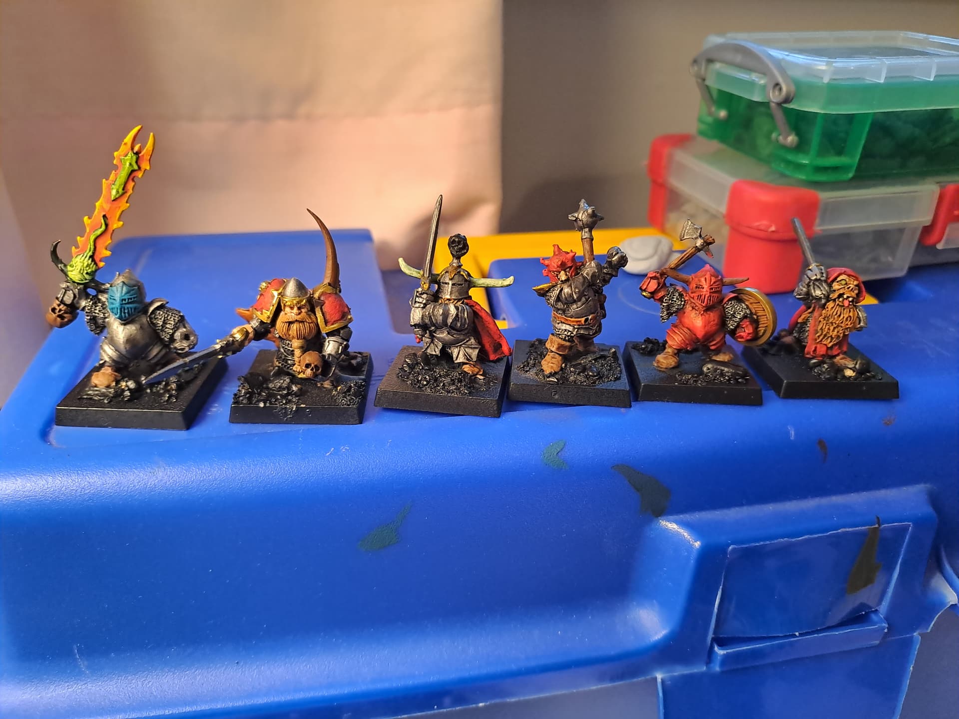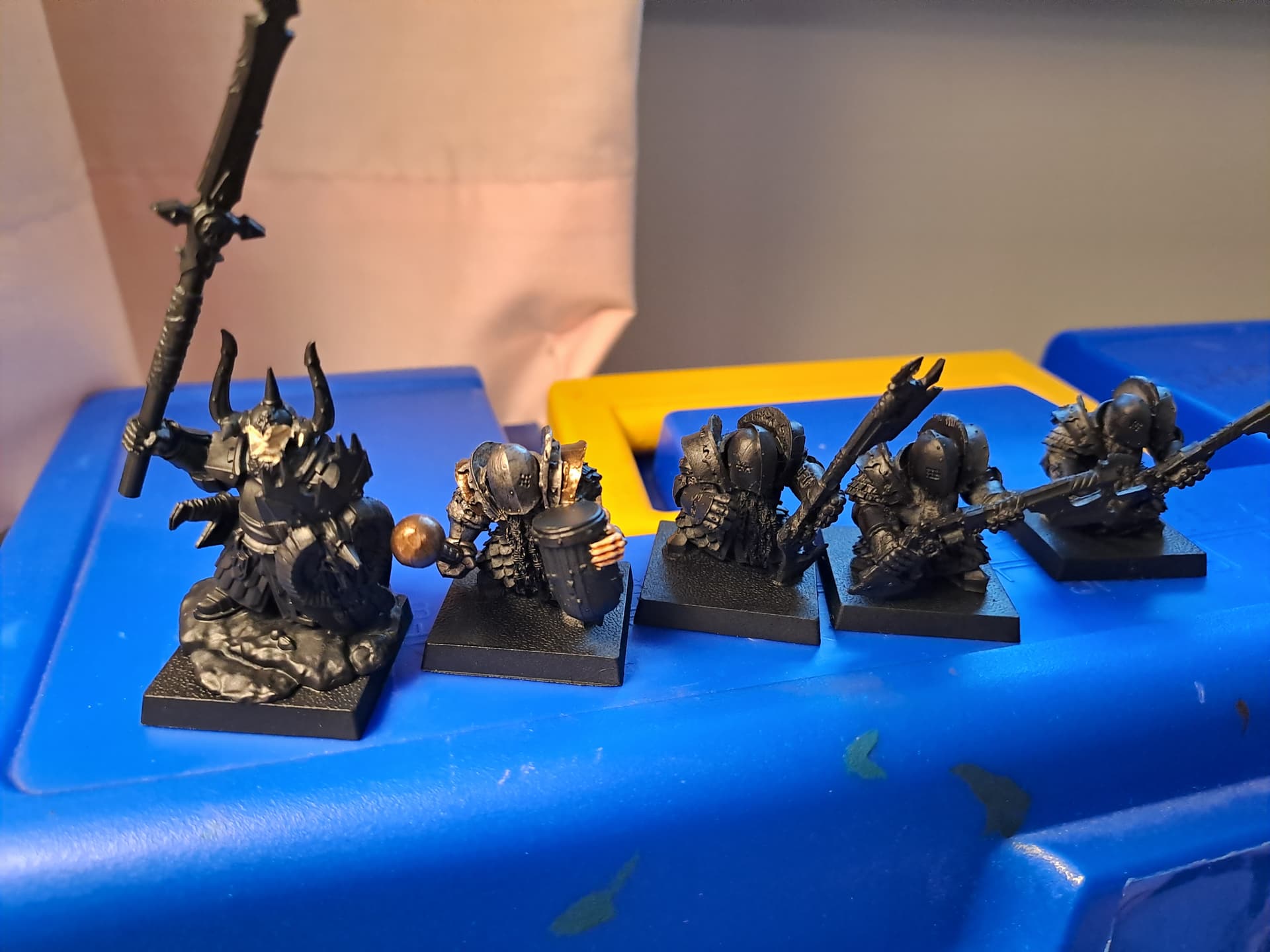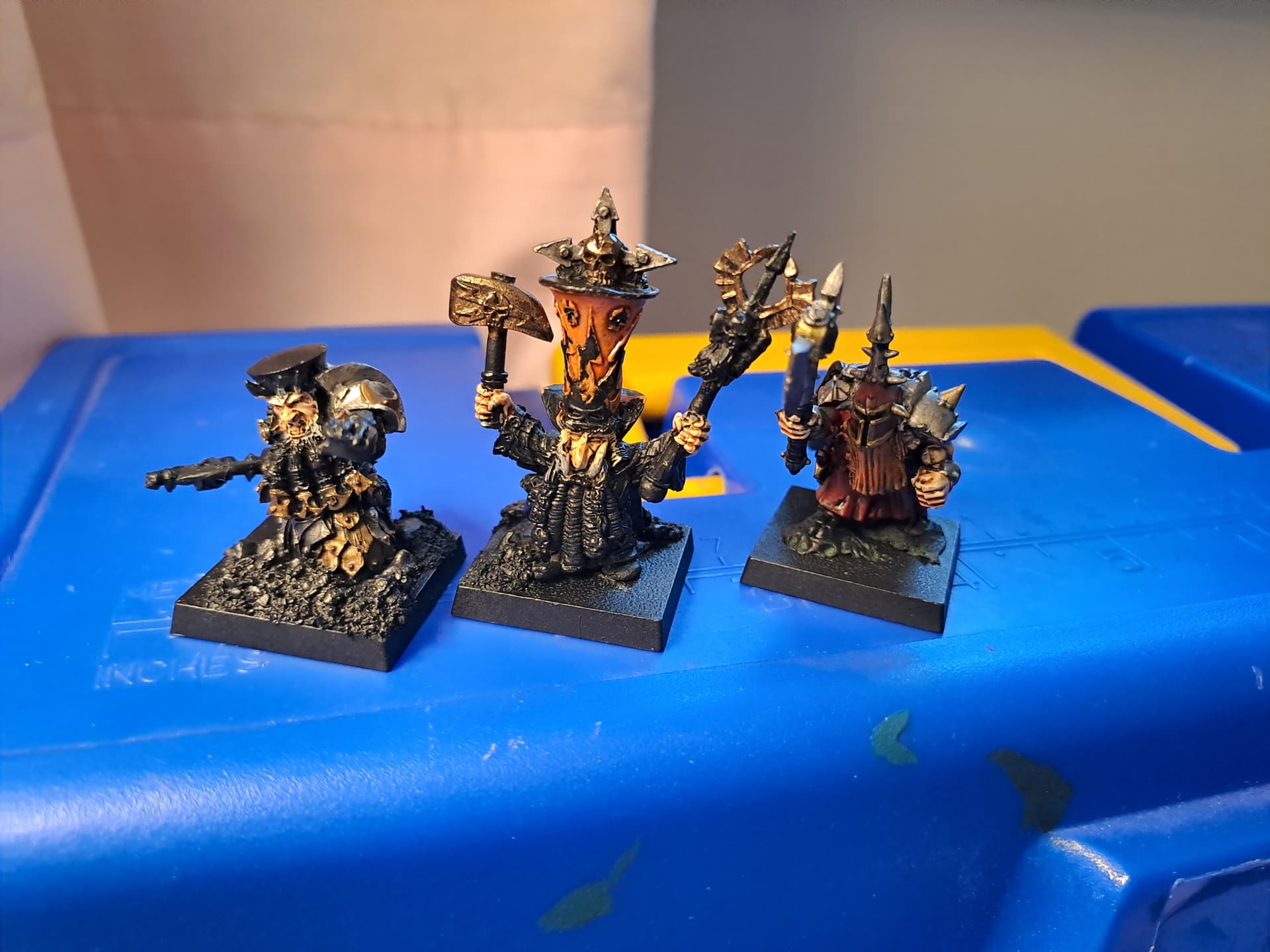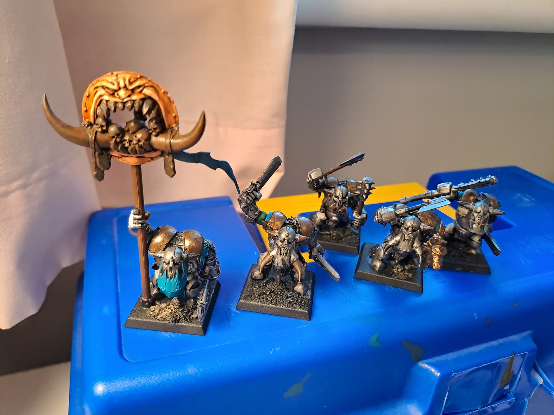 Progress on unit 3. I really wanted there to be a Khornate inspired old stool feel. Fluff wise my general is an outcast up in the North seeking redemption and has ‘true’ Chaos Dwarf allies / mercenaries from the wastes.