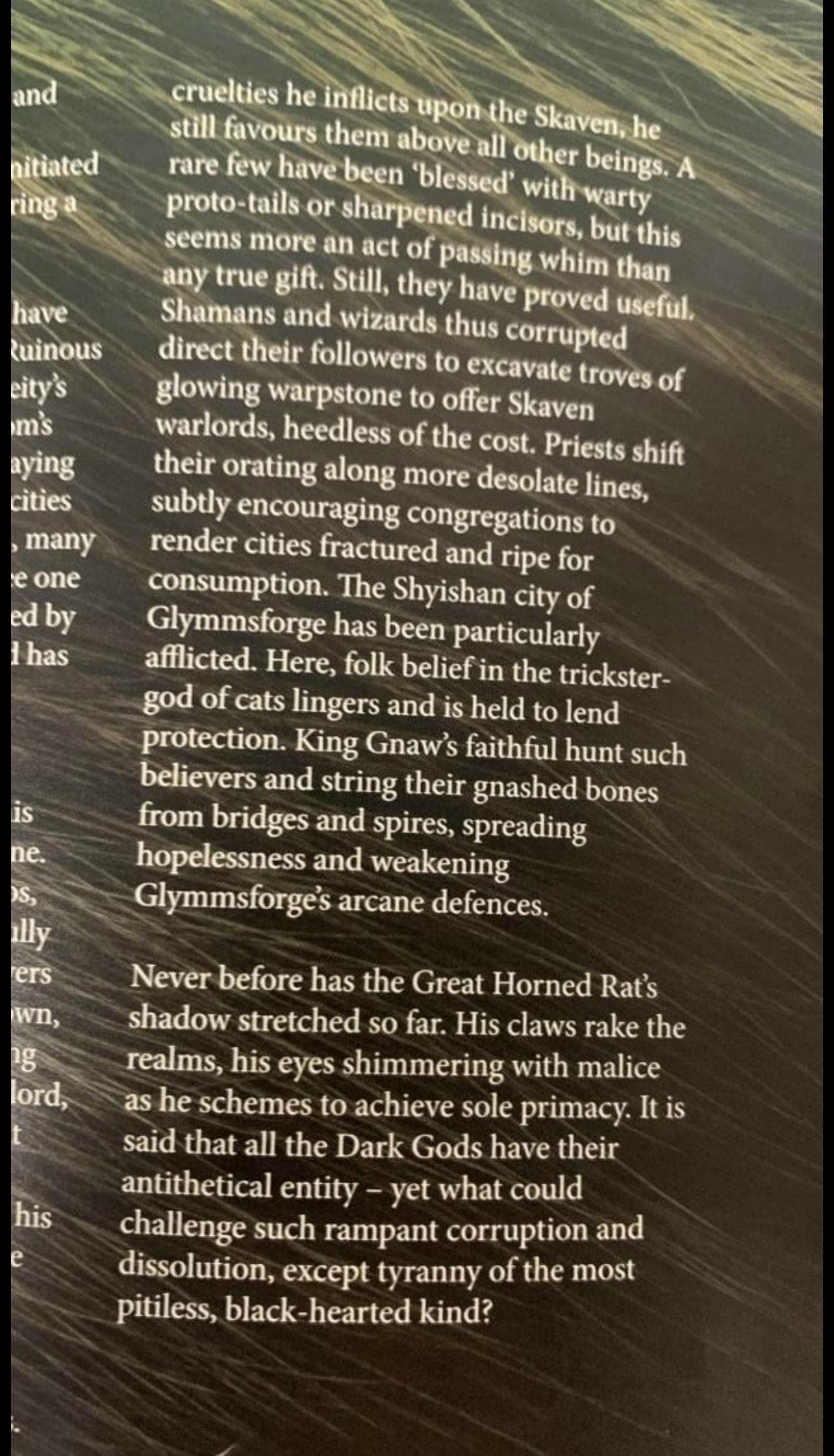 Having picked up white dwarf and read the article that leads into Hashut too, all around the rise of The Horned Rat to becoming a chaos god, it makes for very interesting reading together.