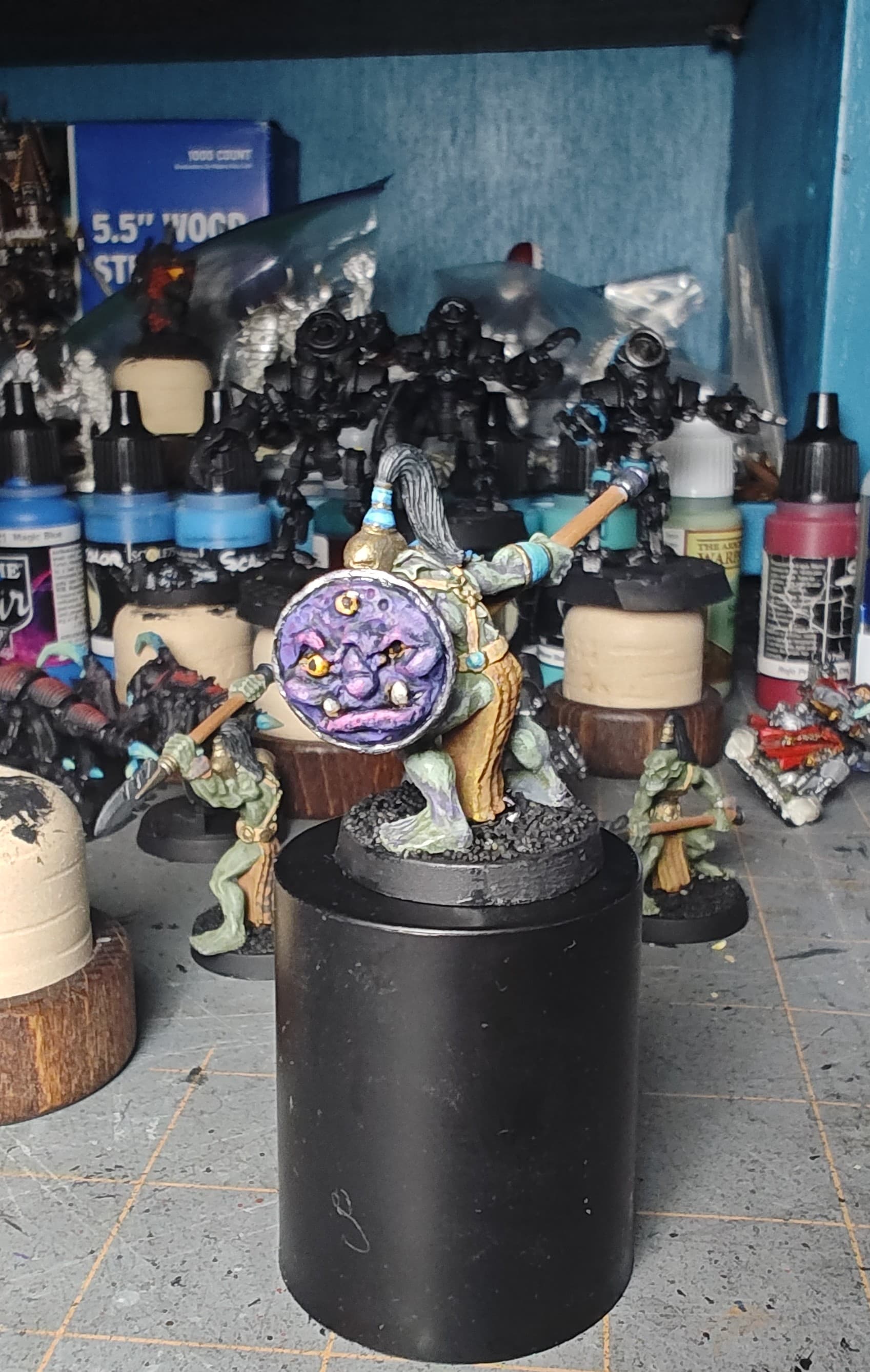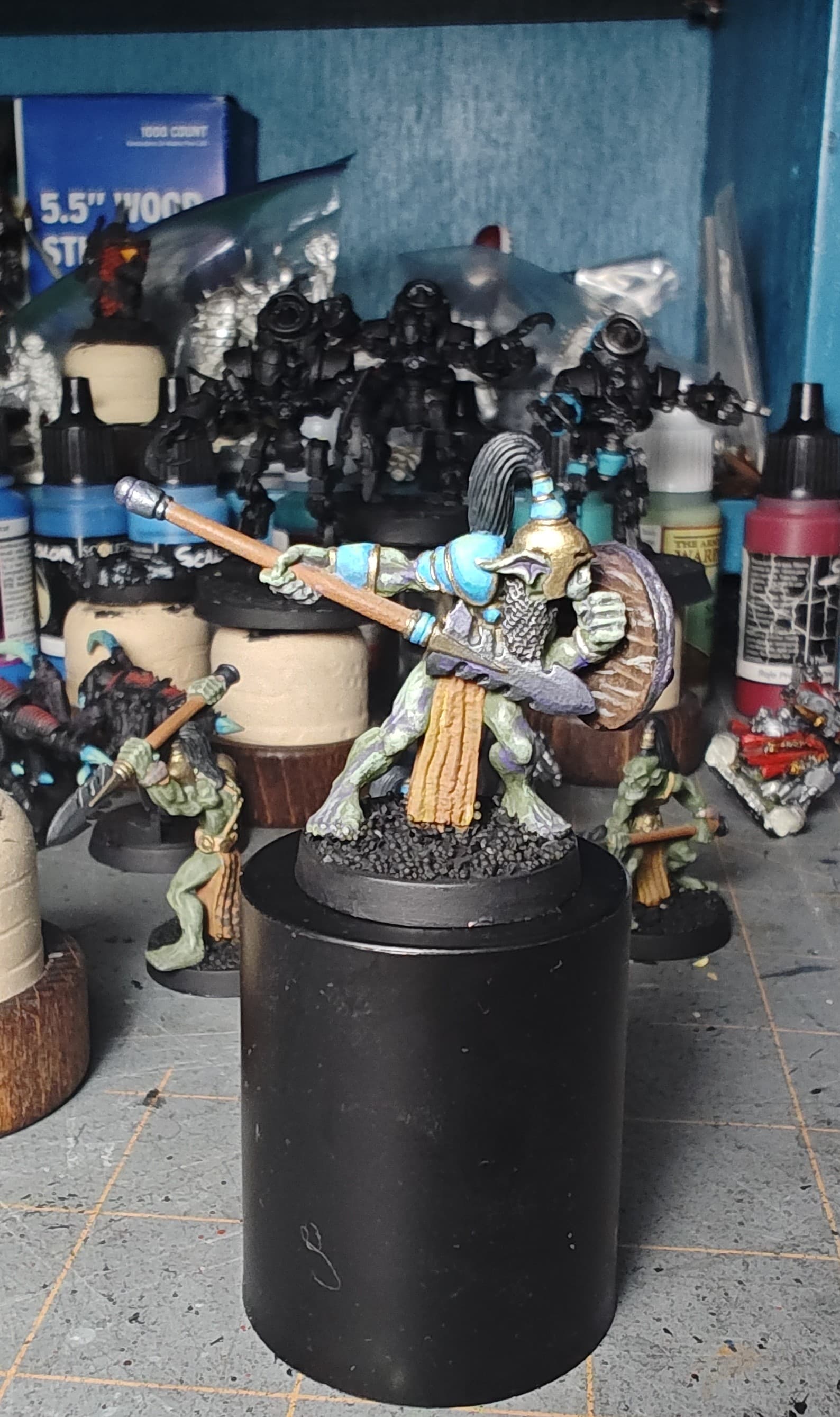 And finally a shot of the model with the unit it will join (which is paint in progress):