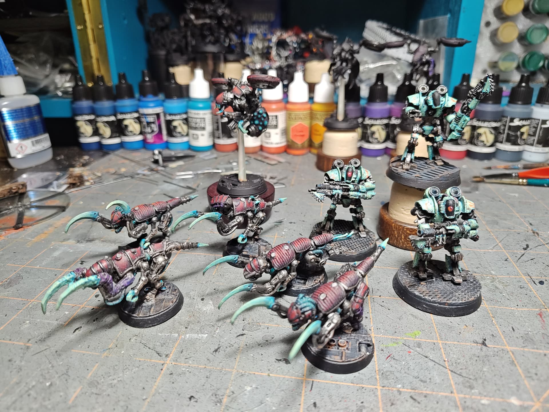 - Basic Tron Eldar (primarily dire avengers with some aspects) Black base with dark blues and blue “lighting”