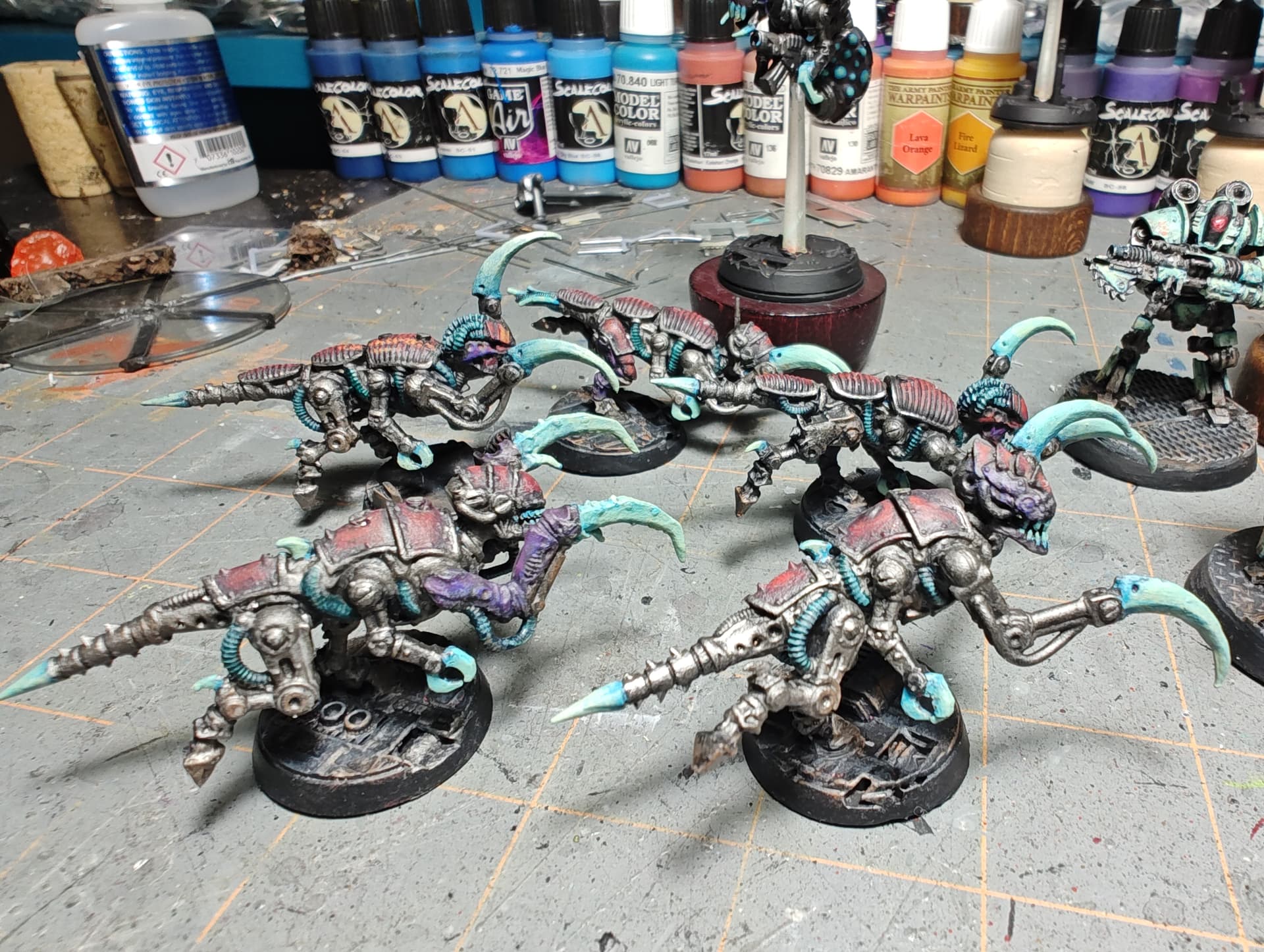 - Tron Eldar Corsairs (the opposite remaining scheme above, or alternately black base with yet another color, yellow, green, or purple)