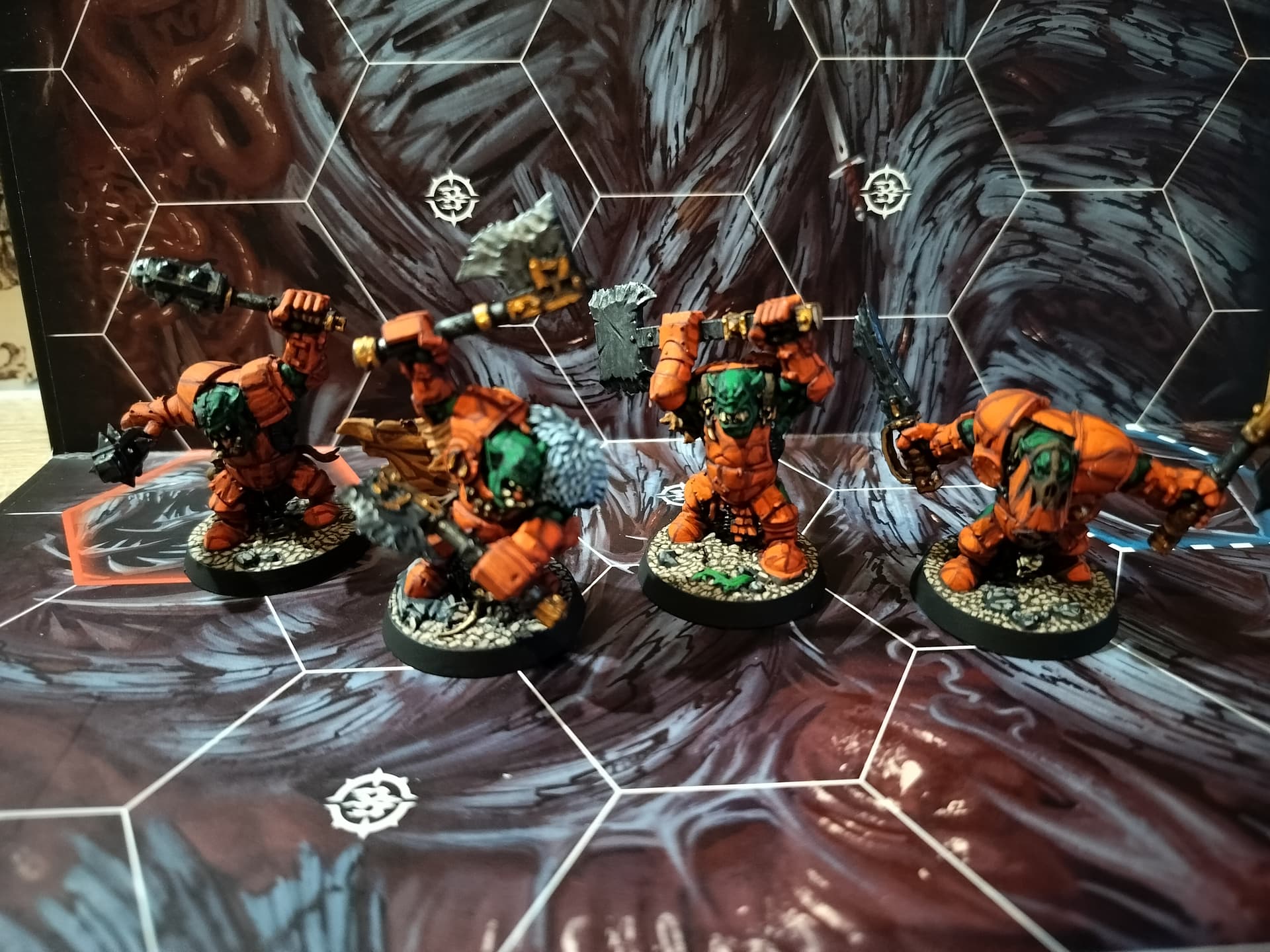 Painted in the colours of my actual Chaos Dwarf collection, I envisioned them as a pillaging advance party, paving the way for the arrival of the Blood of the Bull that will come soon…