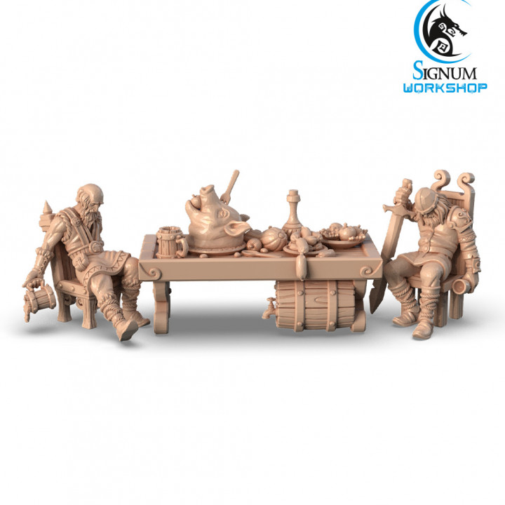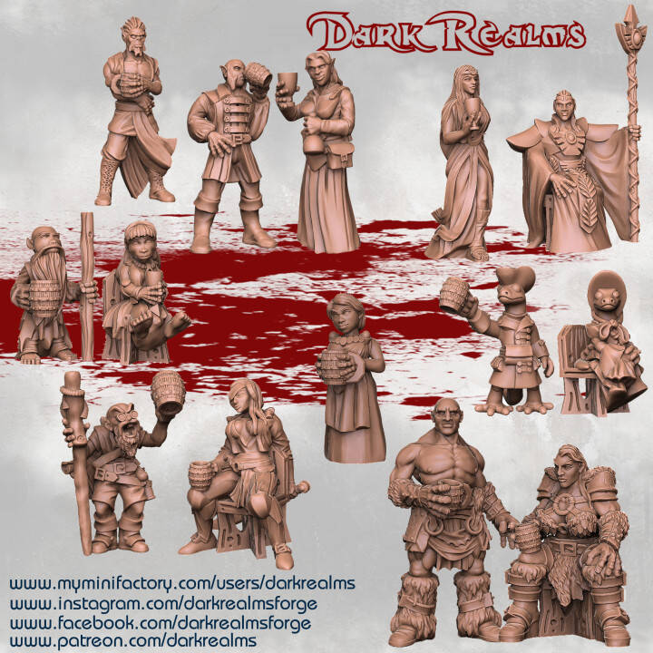 There’s also several very promising models in the Tavern Playset Bundle from Twin Goddess Miniatures (I’m ignoring the arm wrestling dwarf and wizard models), no information if the models are separate from the chairs: