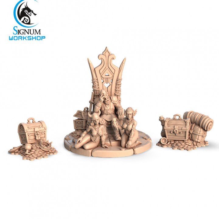 Seated dwarfs are a bit more common, usually as dwarf kings or lords. The Dwarf King’s Throne of Power from Citadel has a seated dwarf