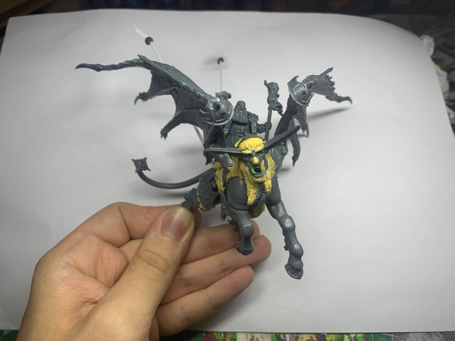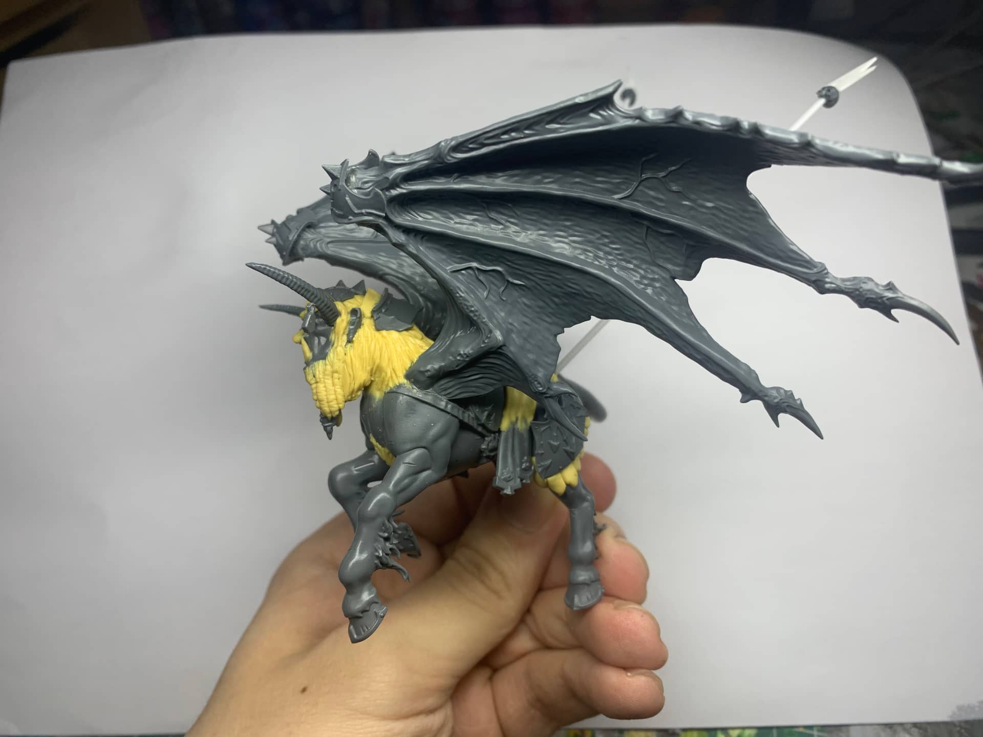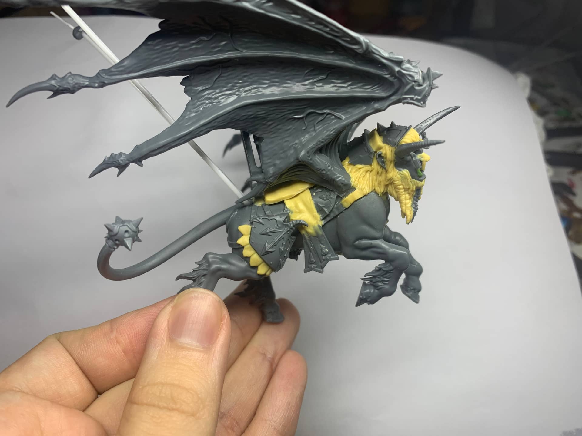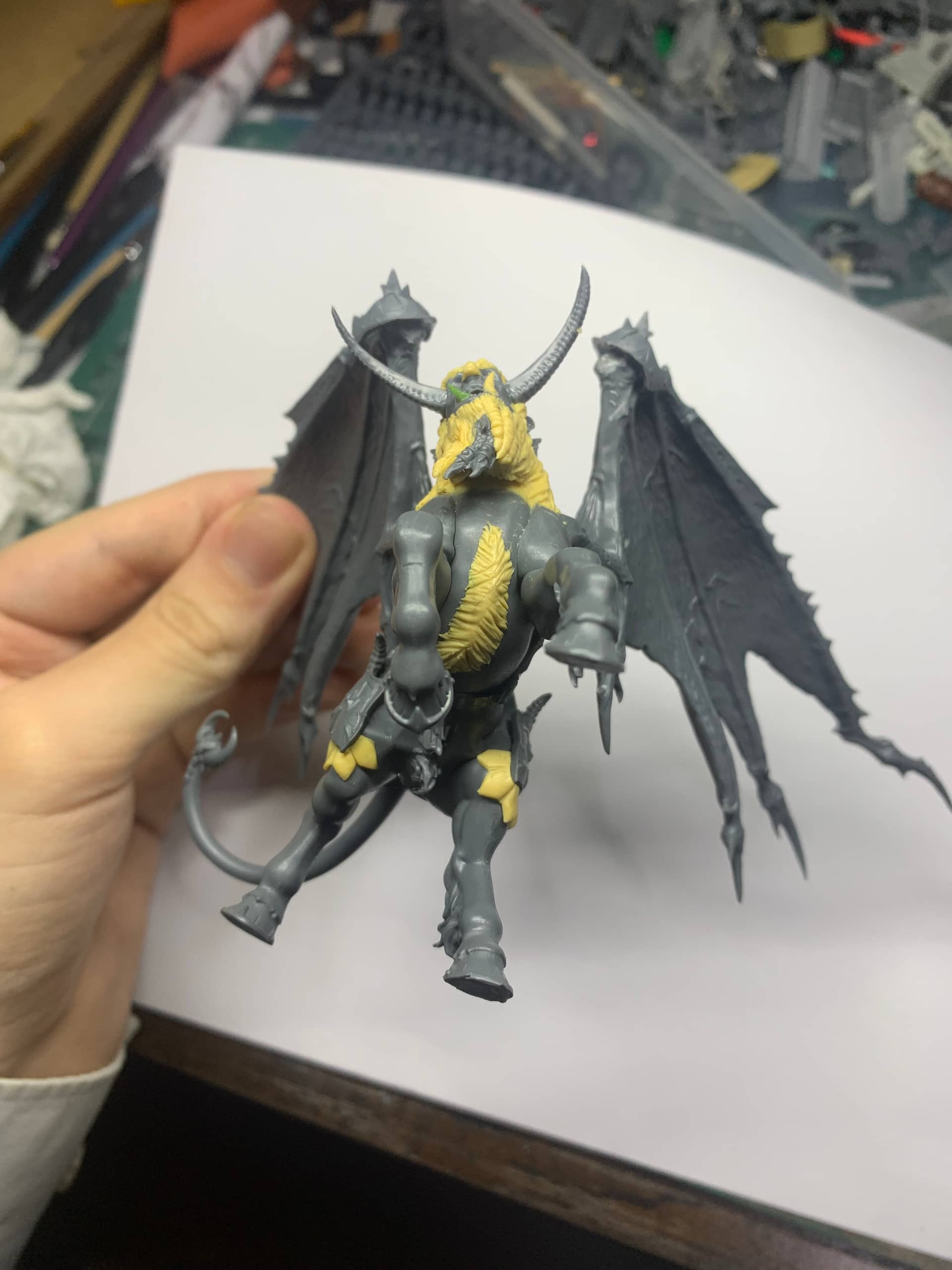 He is currently still sitting on my shelf half-done. I mean to sculpt a mane for him and a proper saddle for the rider, then I can paint. I have kept putting this off though… I also need to paint figure out a blue paint scheme for his skin.